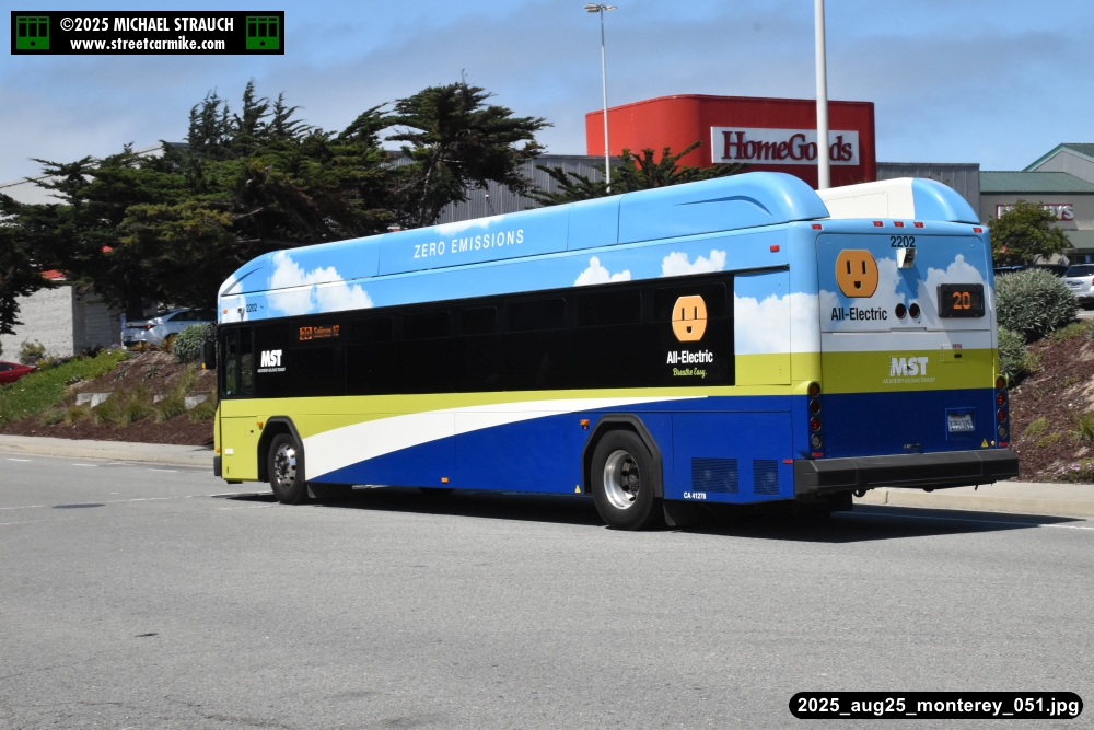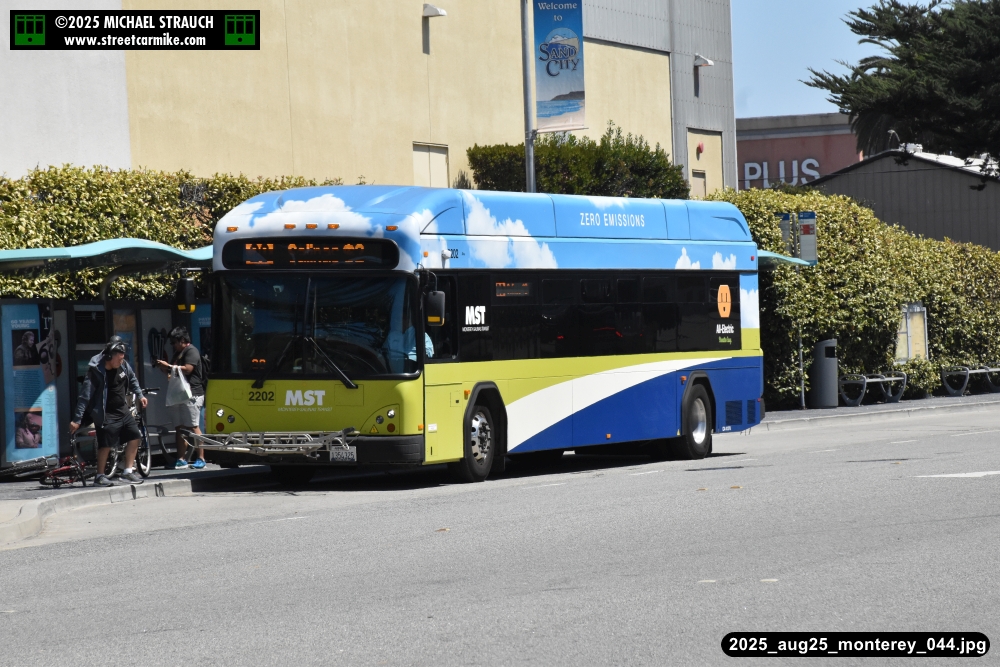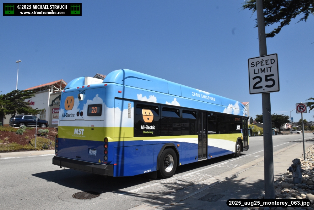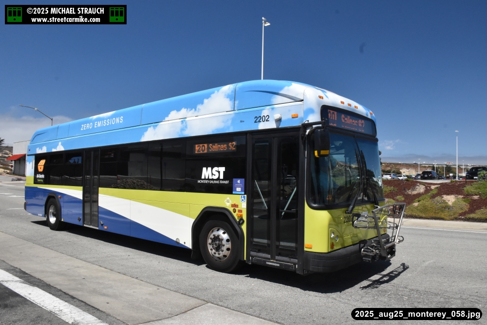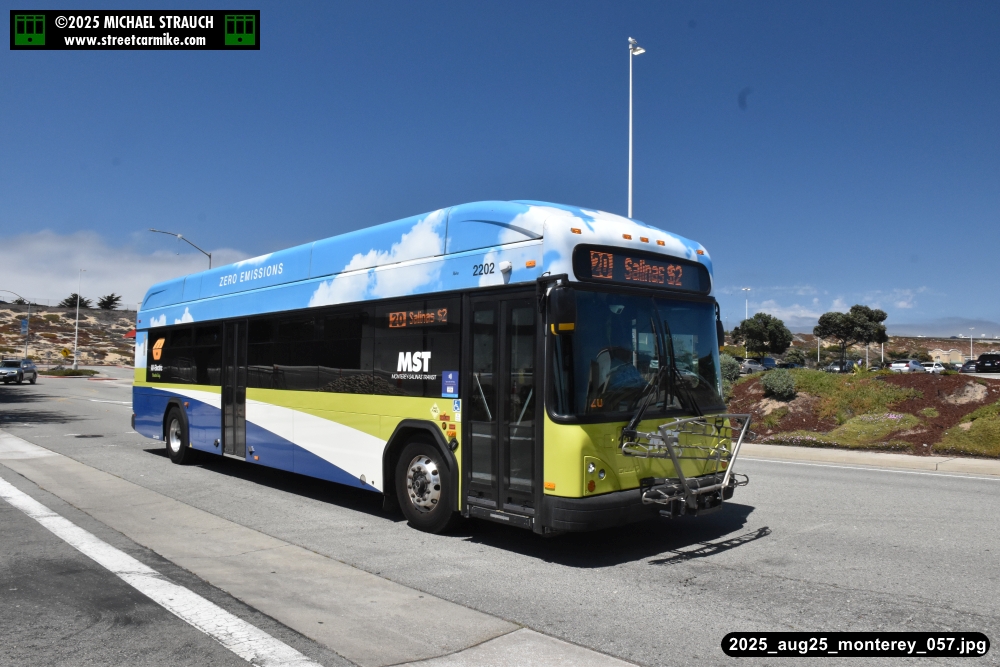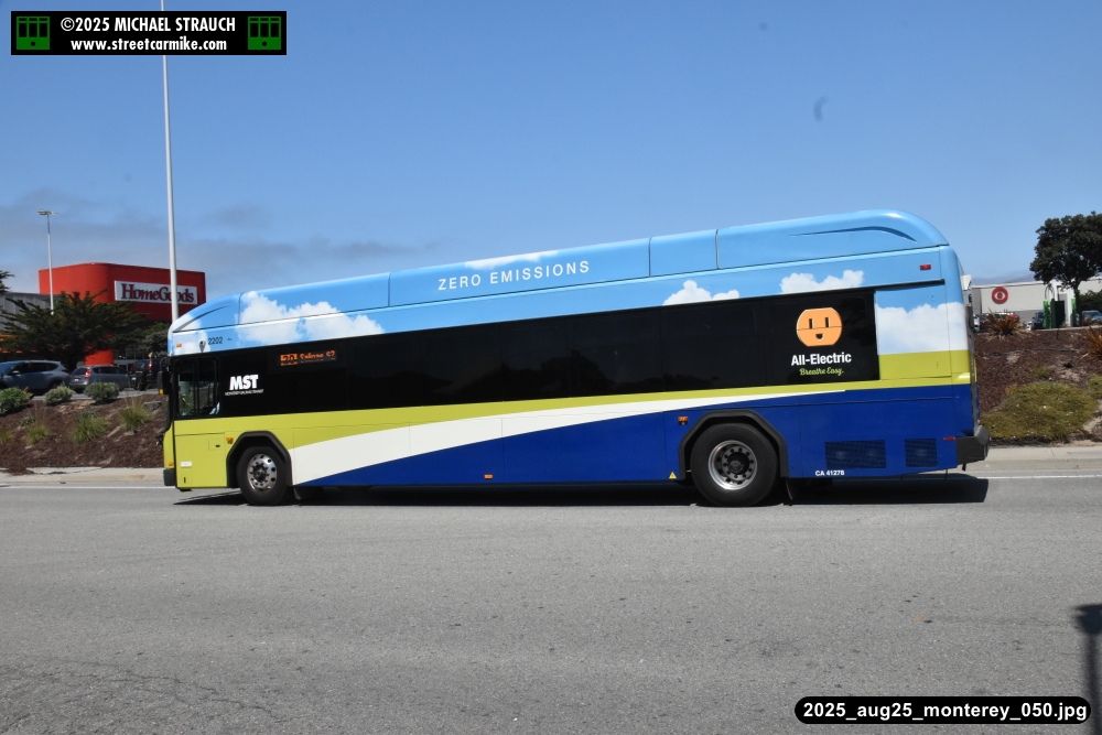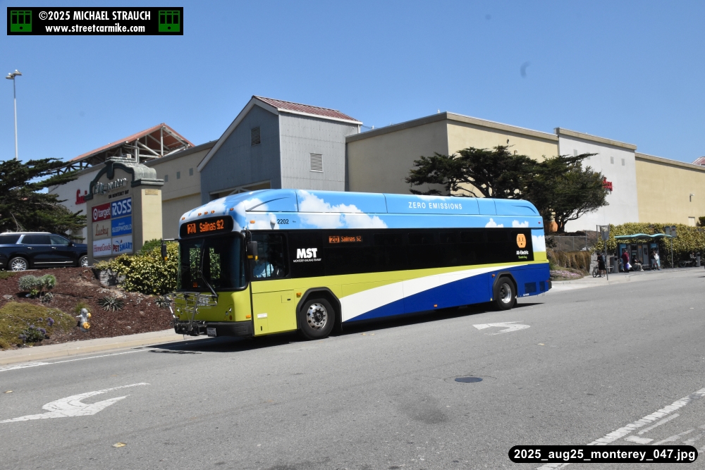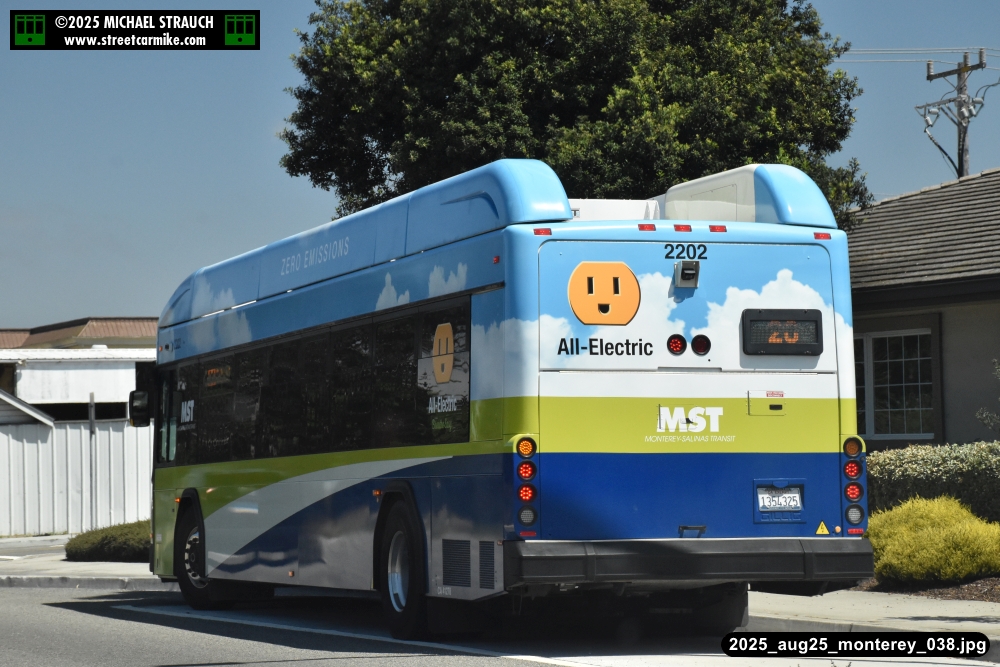 I headed to downtown Monterey when I saw Gillig battery electric 2202 heading to Salinas on the 20.