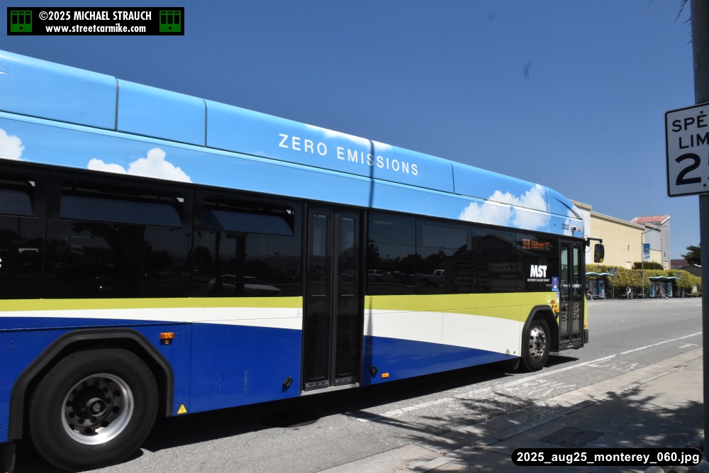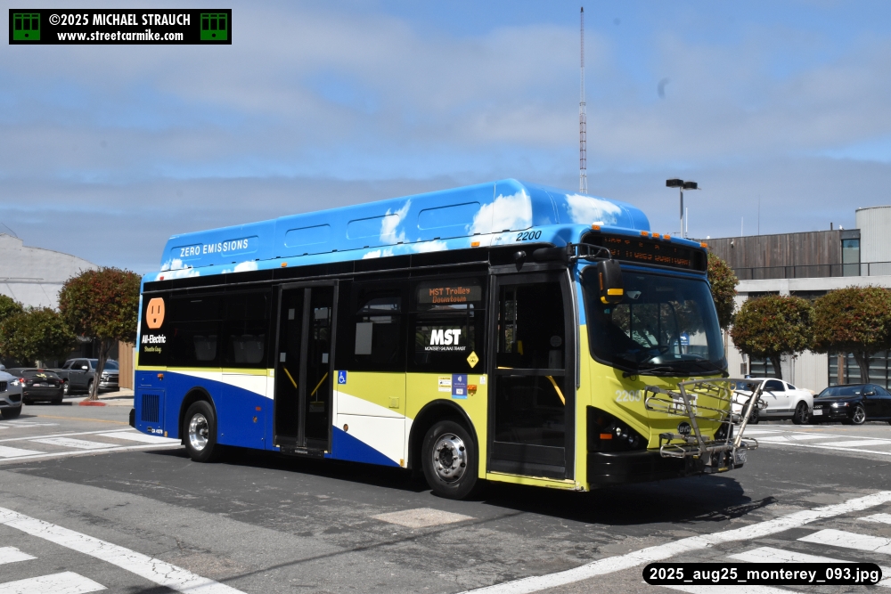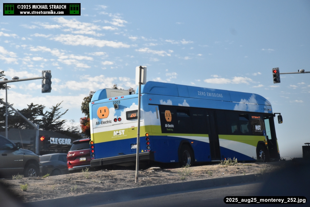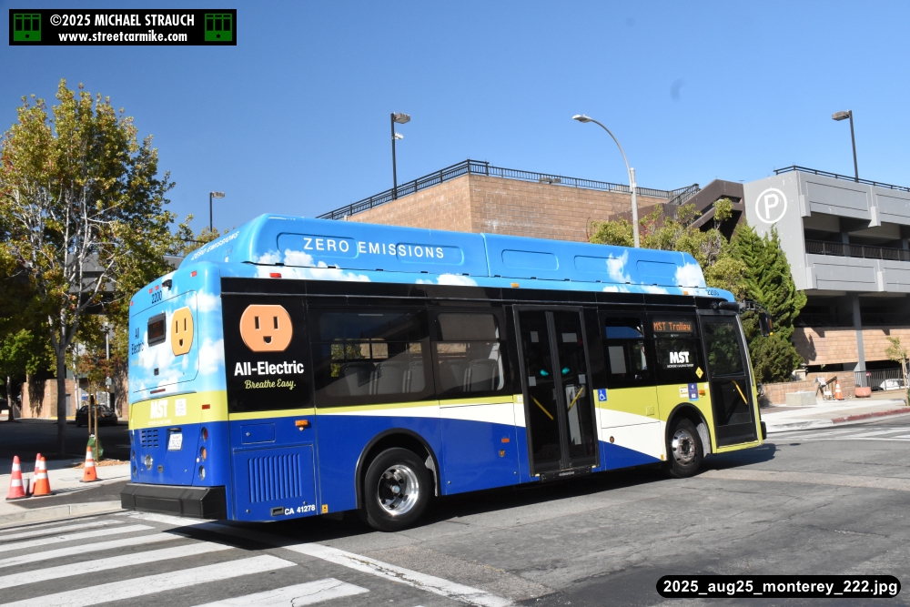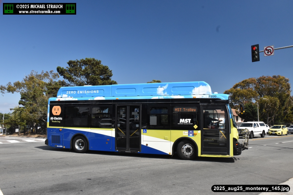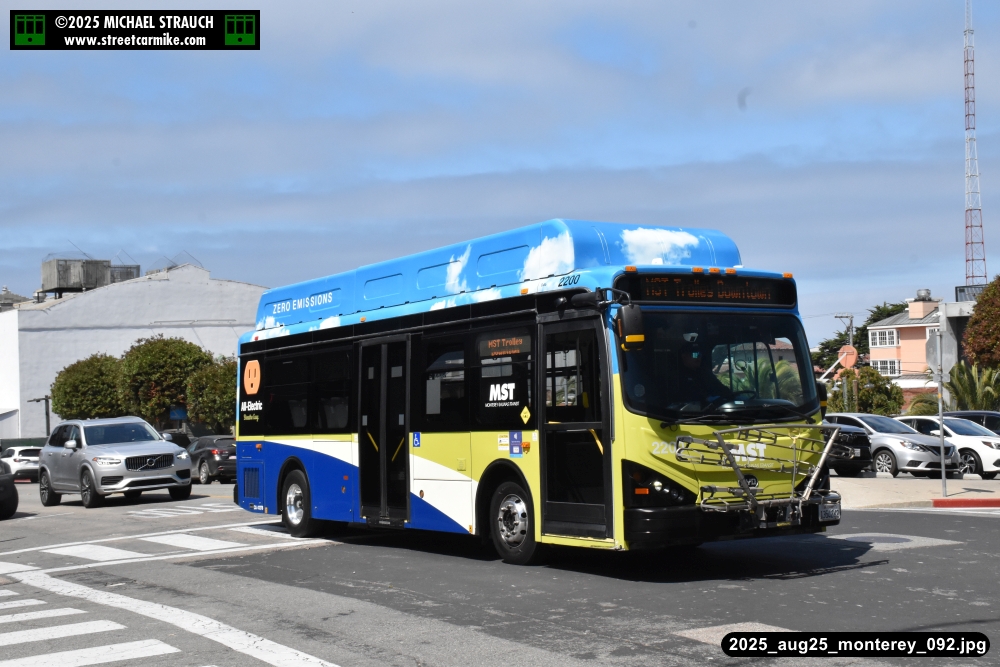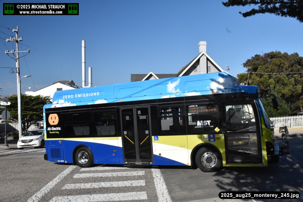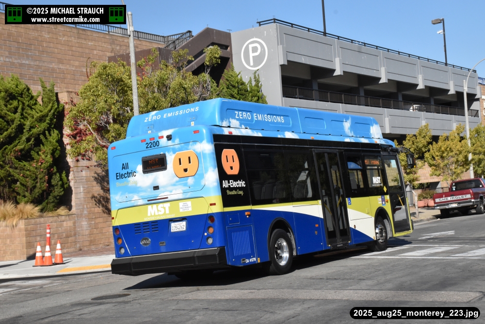 I headed to downtown Monterey when I saw Gillig battery electric 2202 heading to Salinas on the 20.