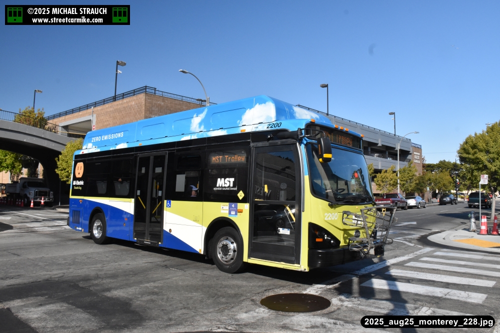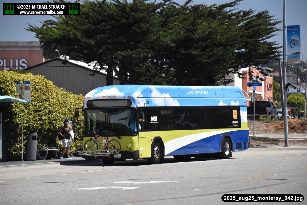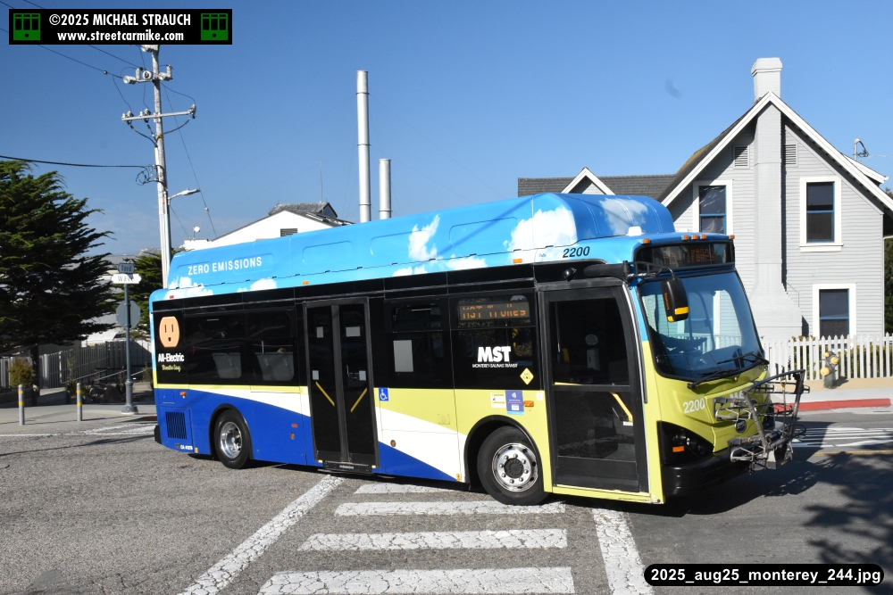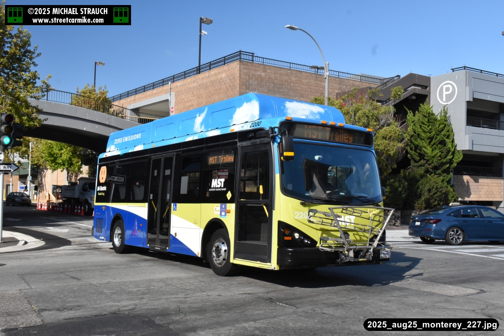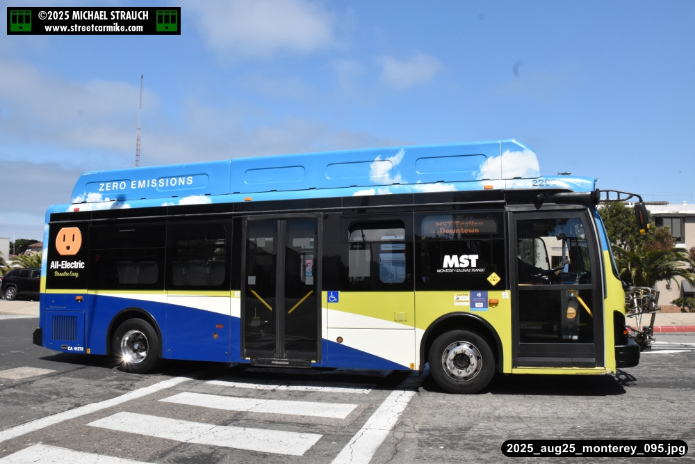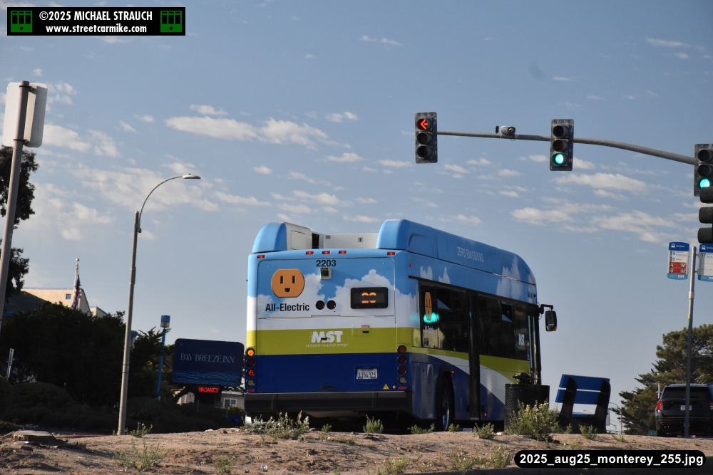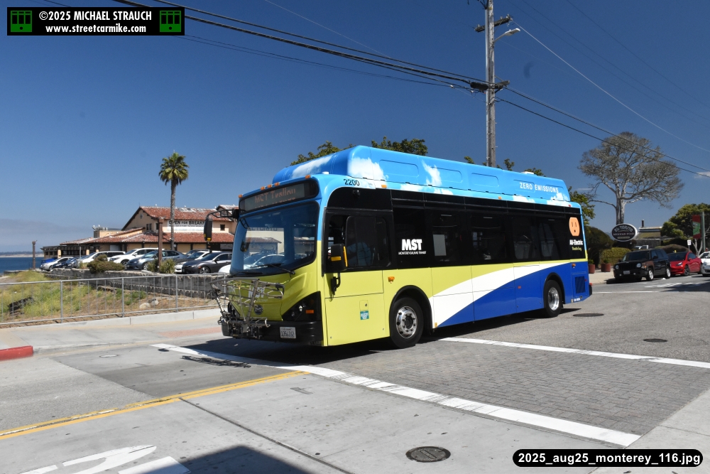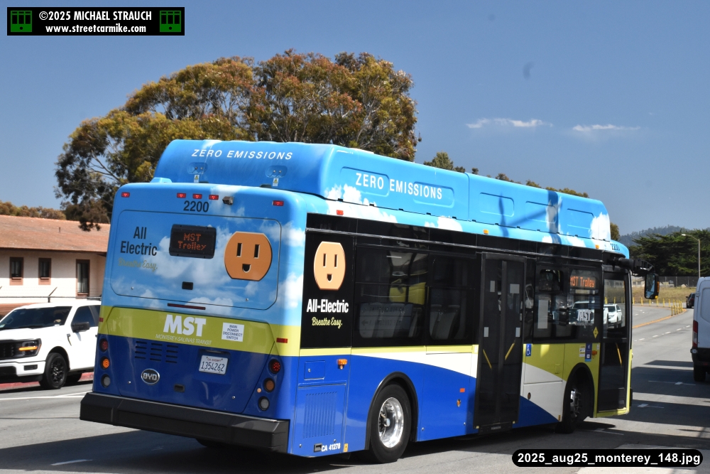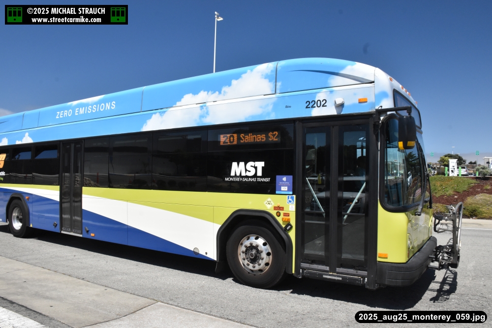 I headed to downtown Monterey when I saw Gillig battery electric 2202 heading to Salinas on the 20.
