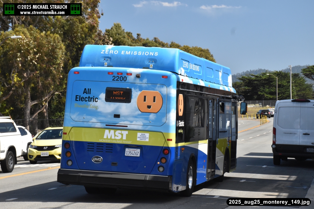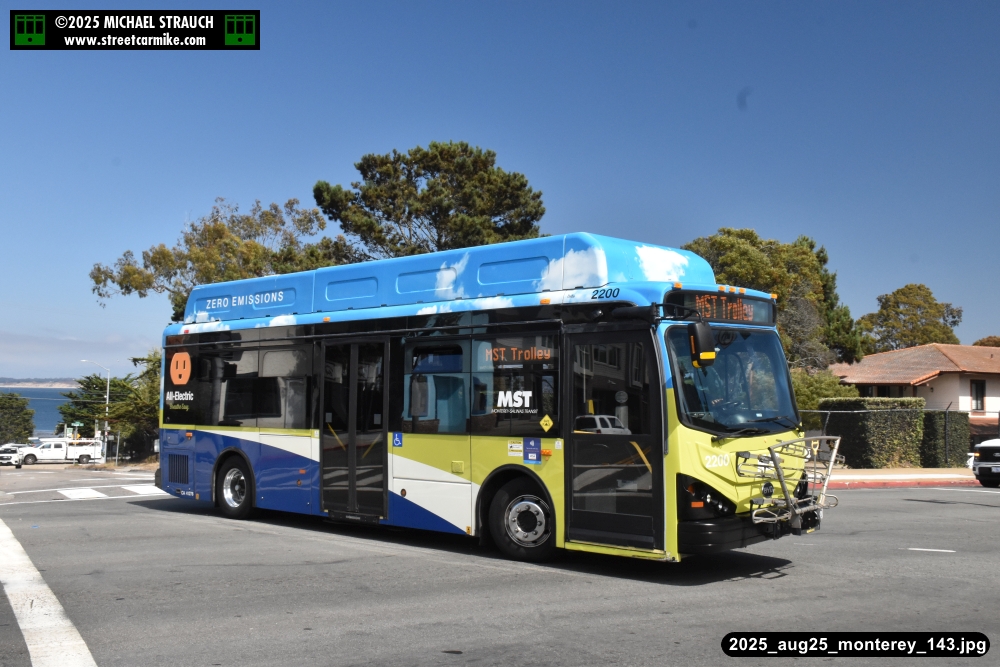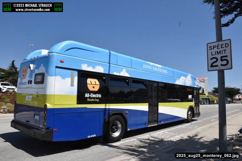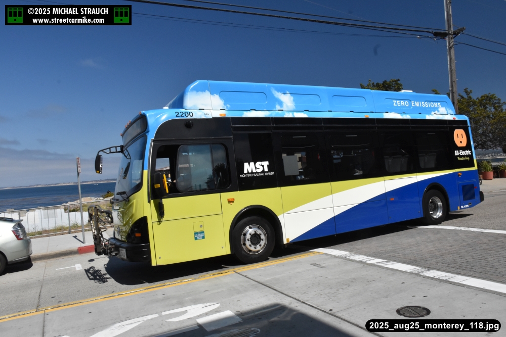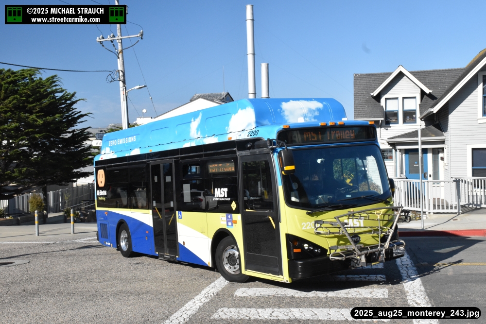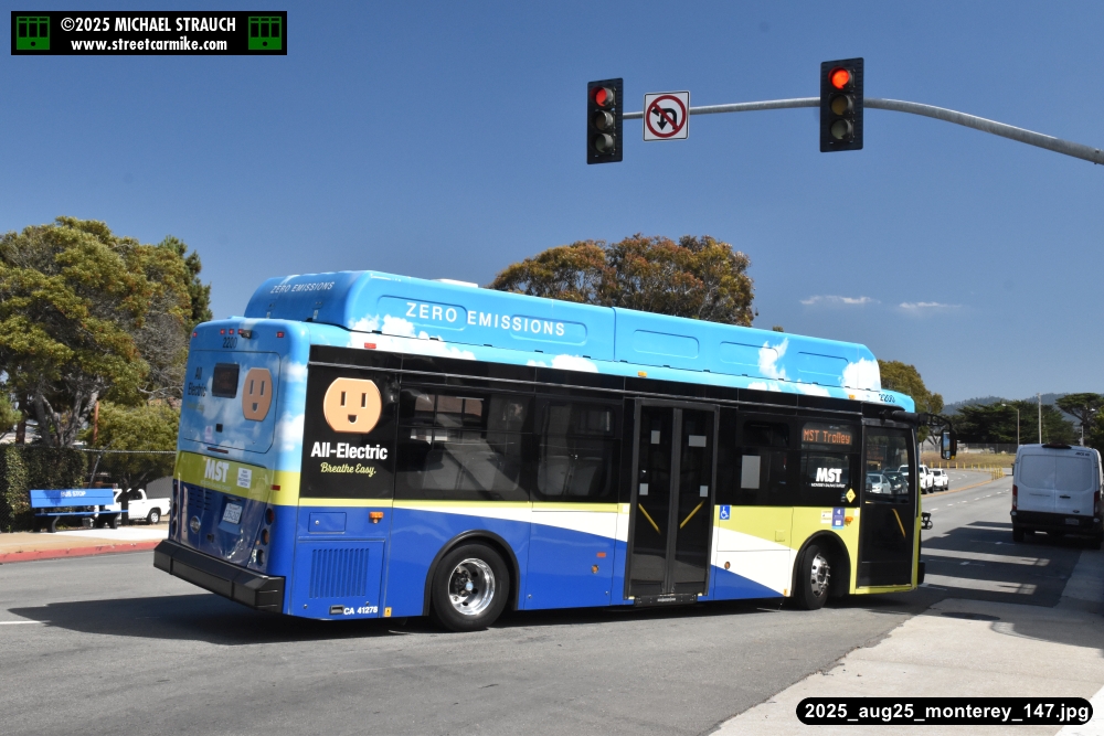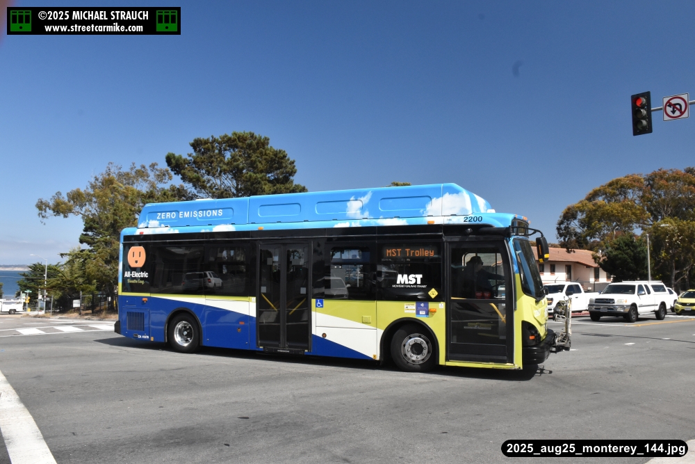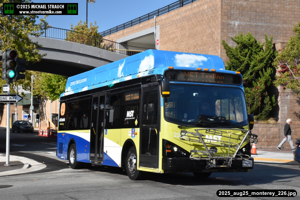 I headed to downtown Monterey when I saw Gillig battery electric 2202 heading to Salinas on the 20.