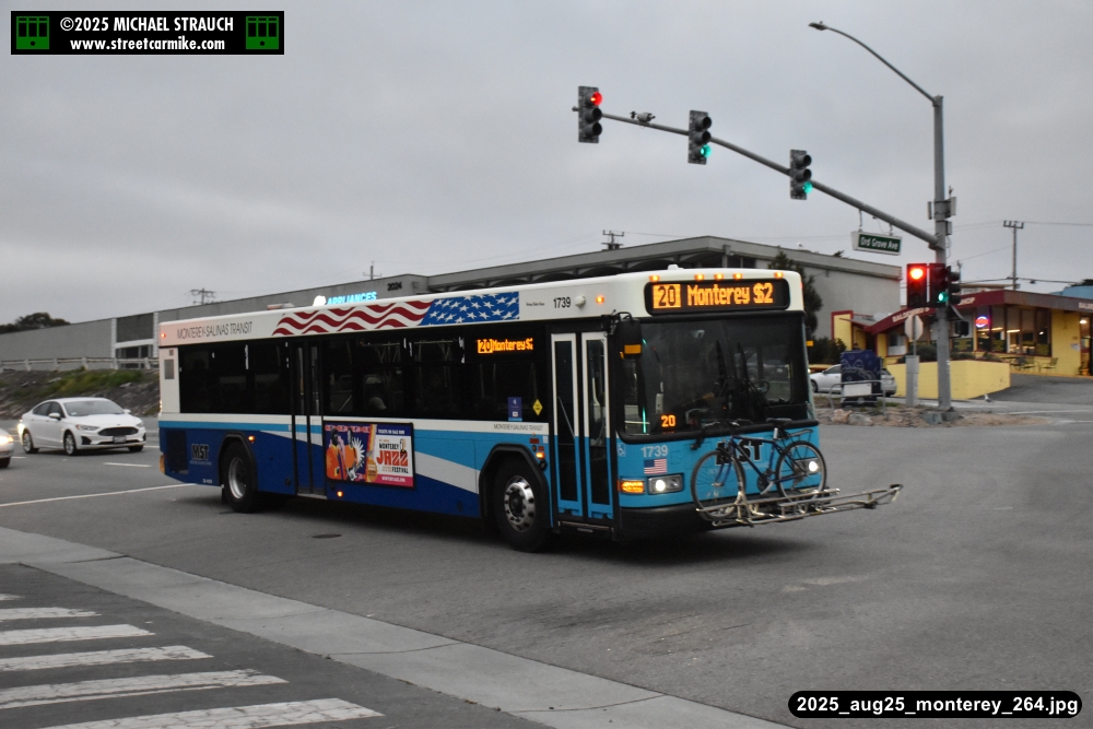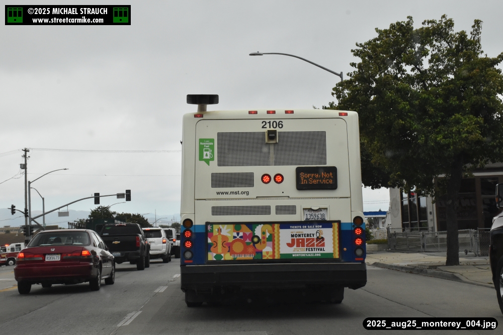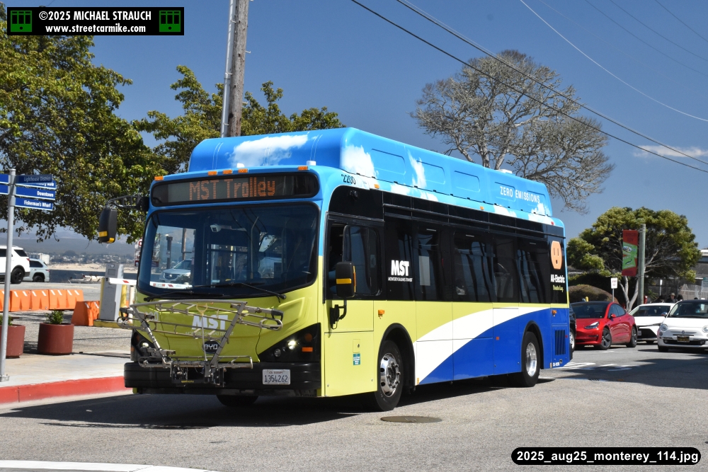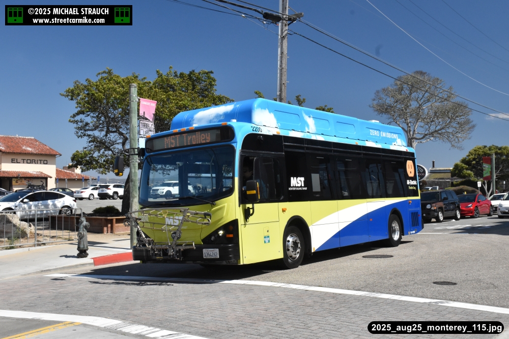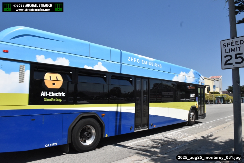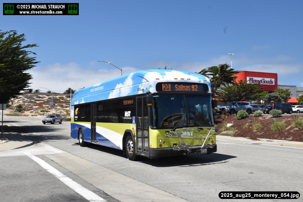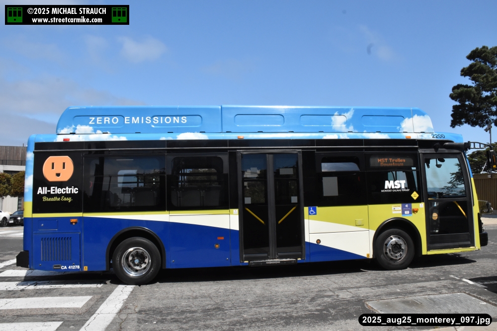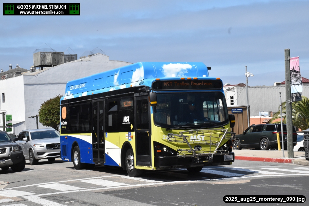 I headed to downtown Monterey when I saw Gillig battery electric 2202 heading to Salinas on the 20.