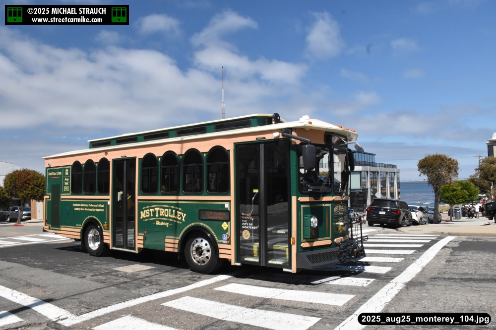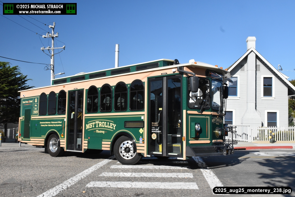 BYD battery electric 2200 in service on the MST Trolley. Parked on Wave St. at Hoffman Ave. to take