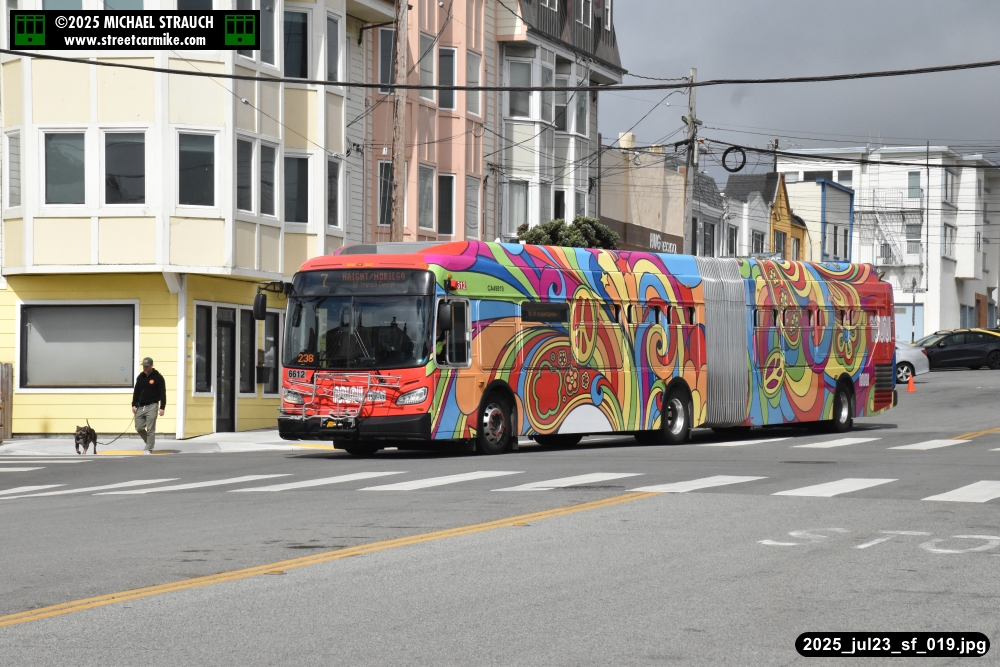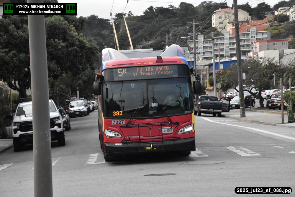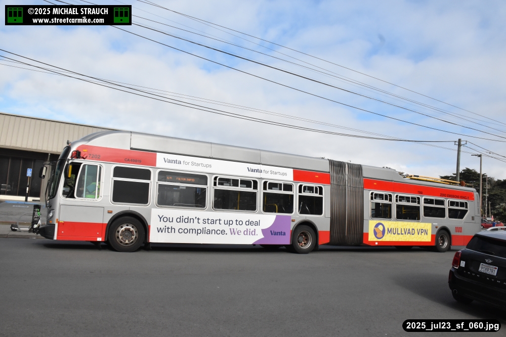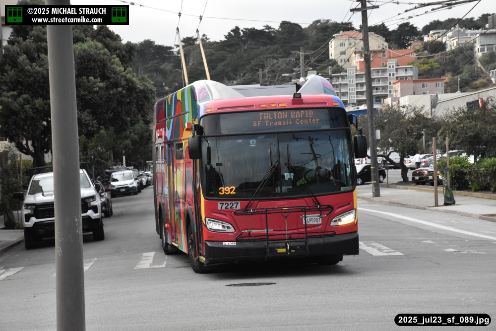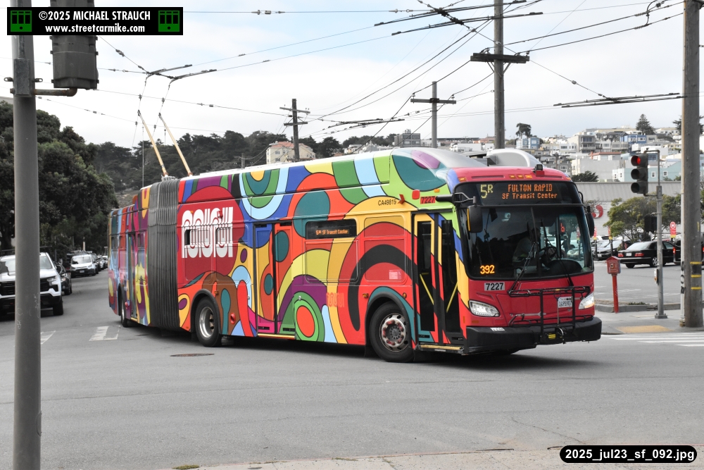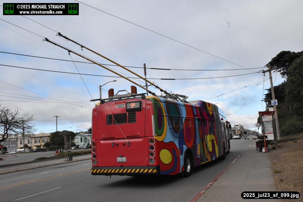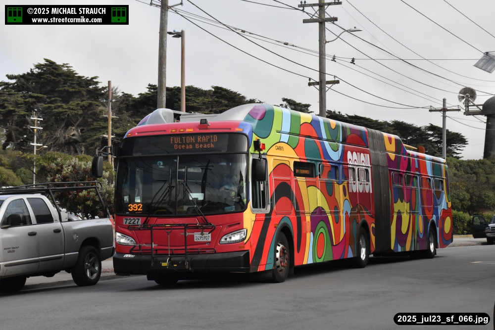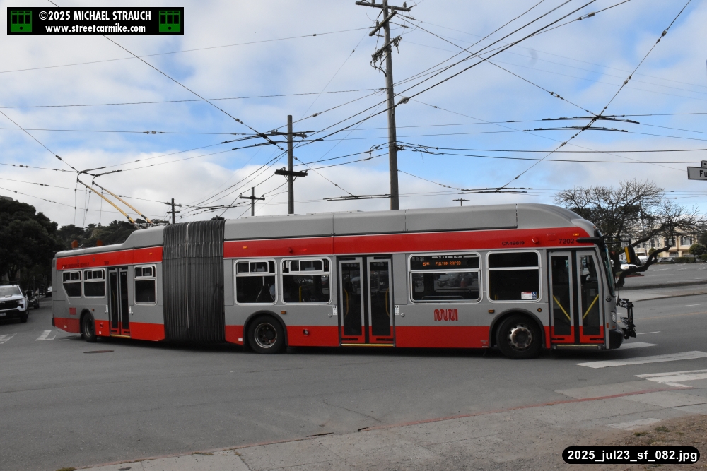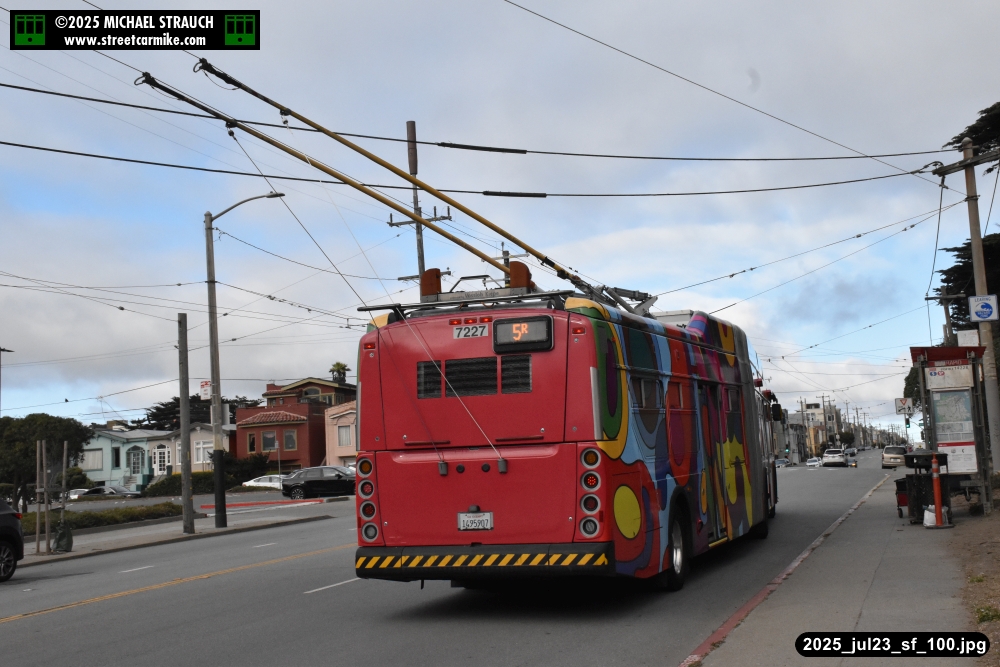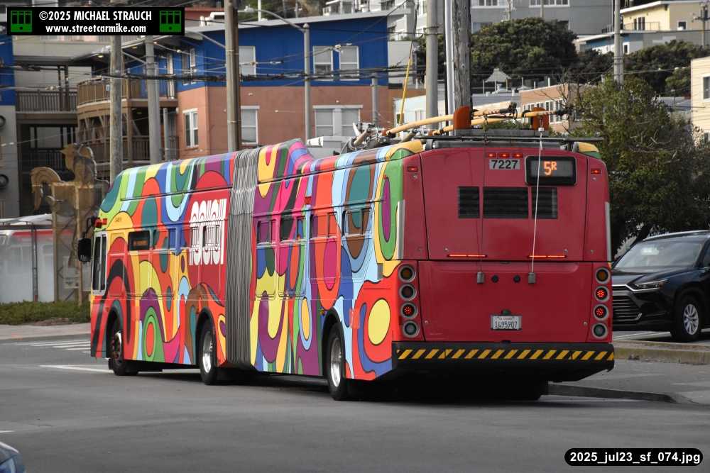 are Siemens 2046 operating N Judah, New Flyer 6612 on the 7 Haight/Noriega, and New Flyer 7227