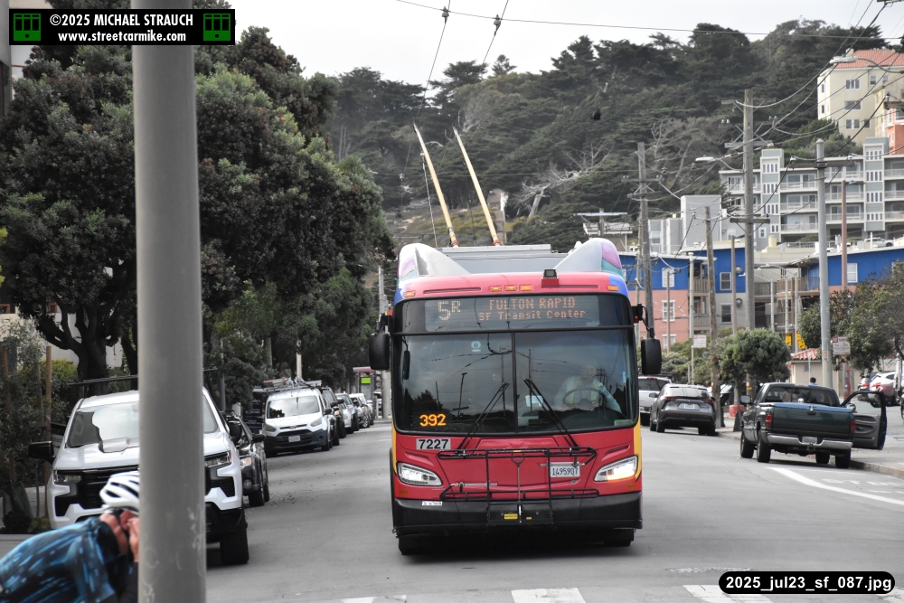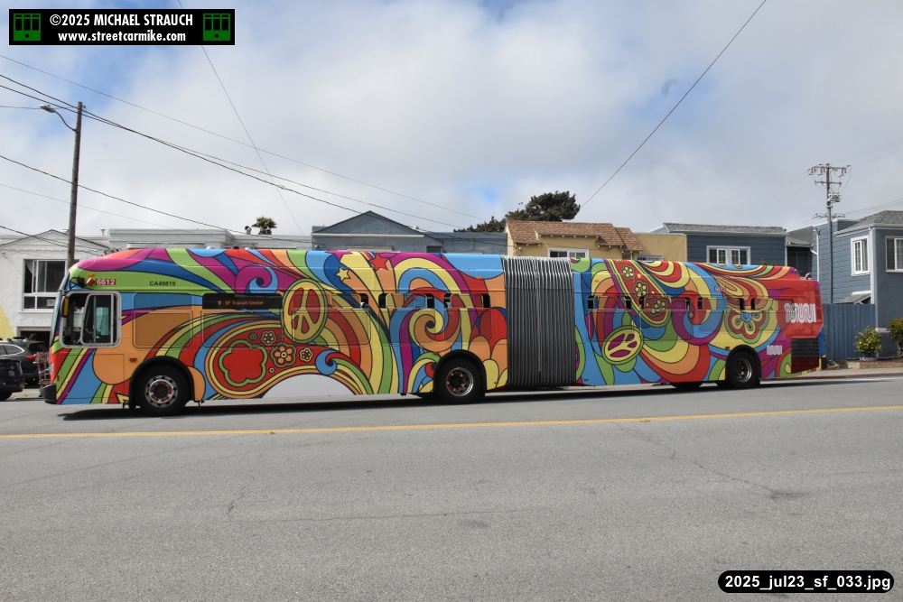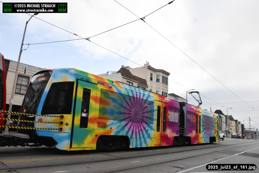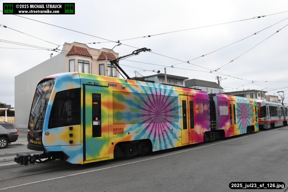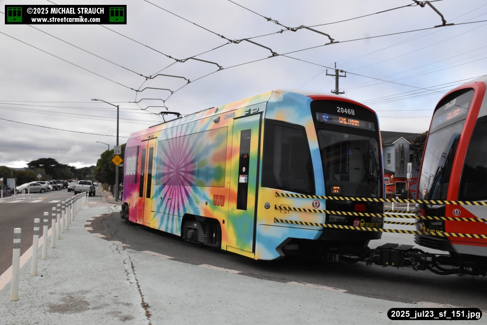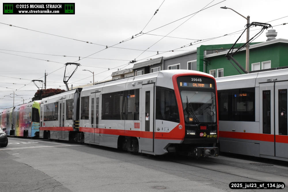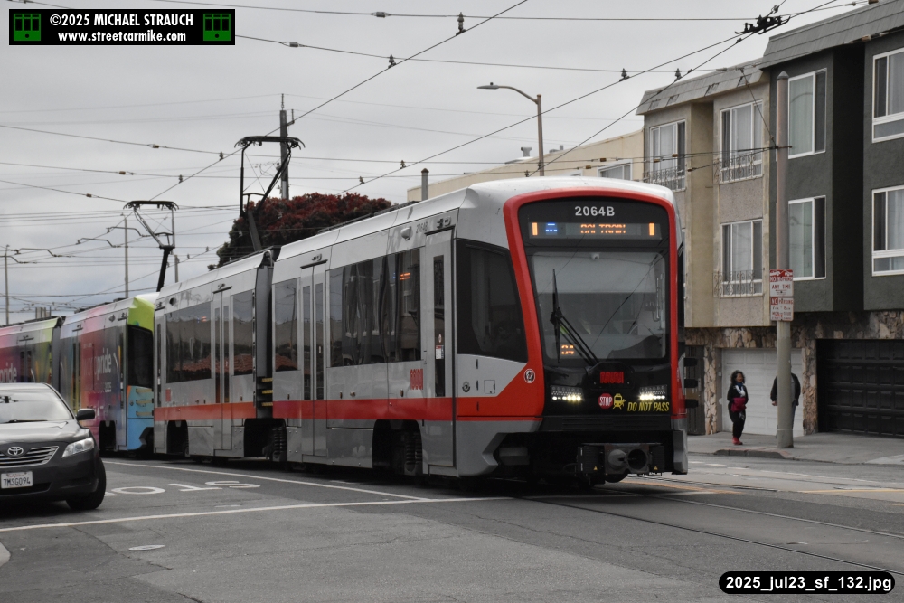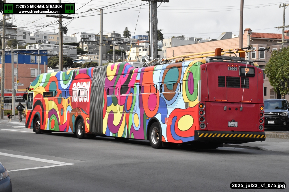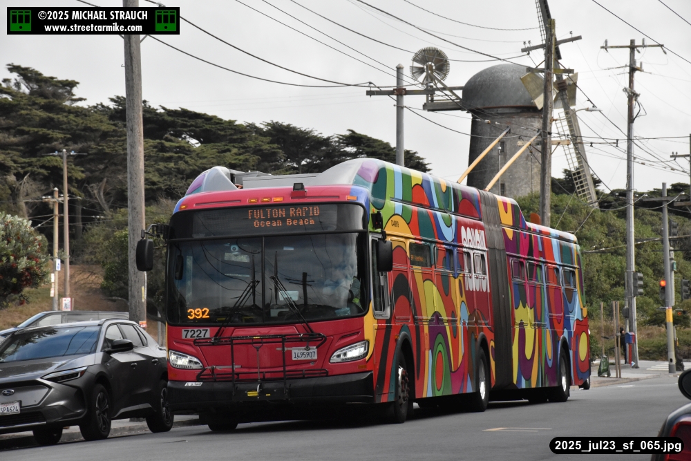are Siemens 2046 operating N Judah, New Flyer 6612 on the 7 Haight/Noriega, and New Flyer 7227