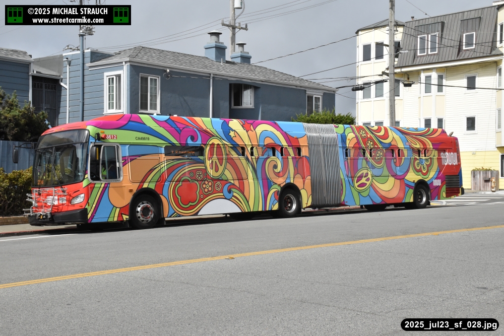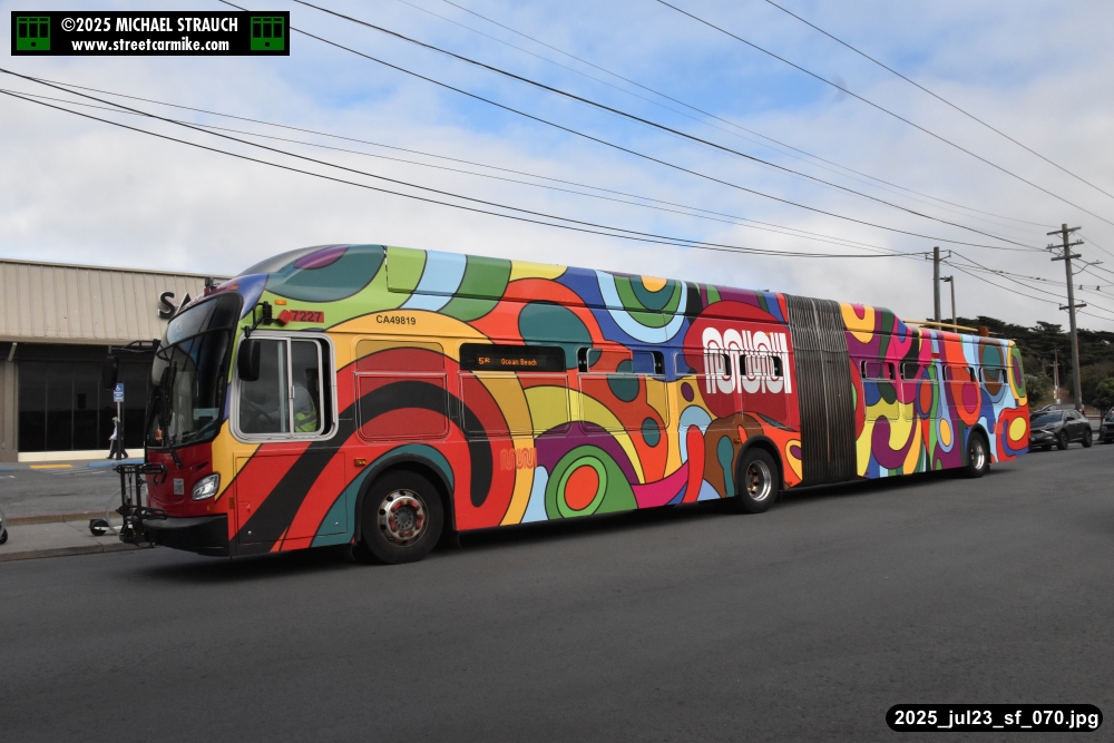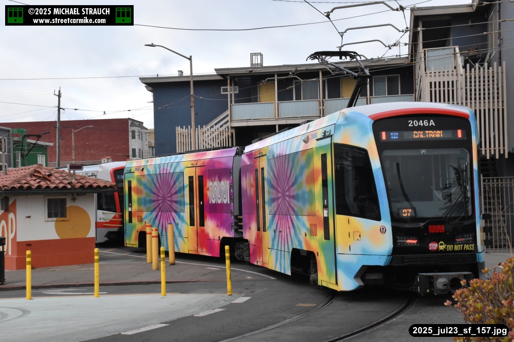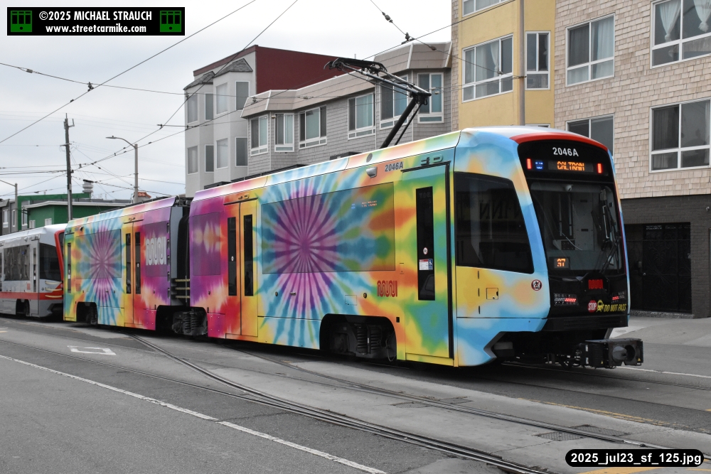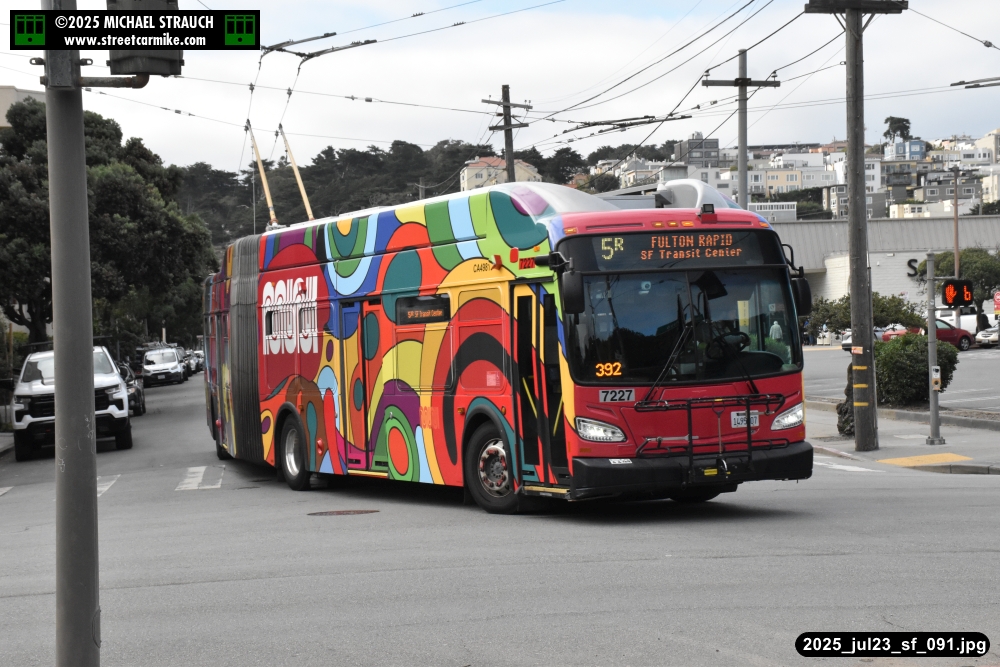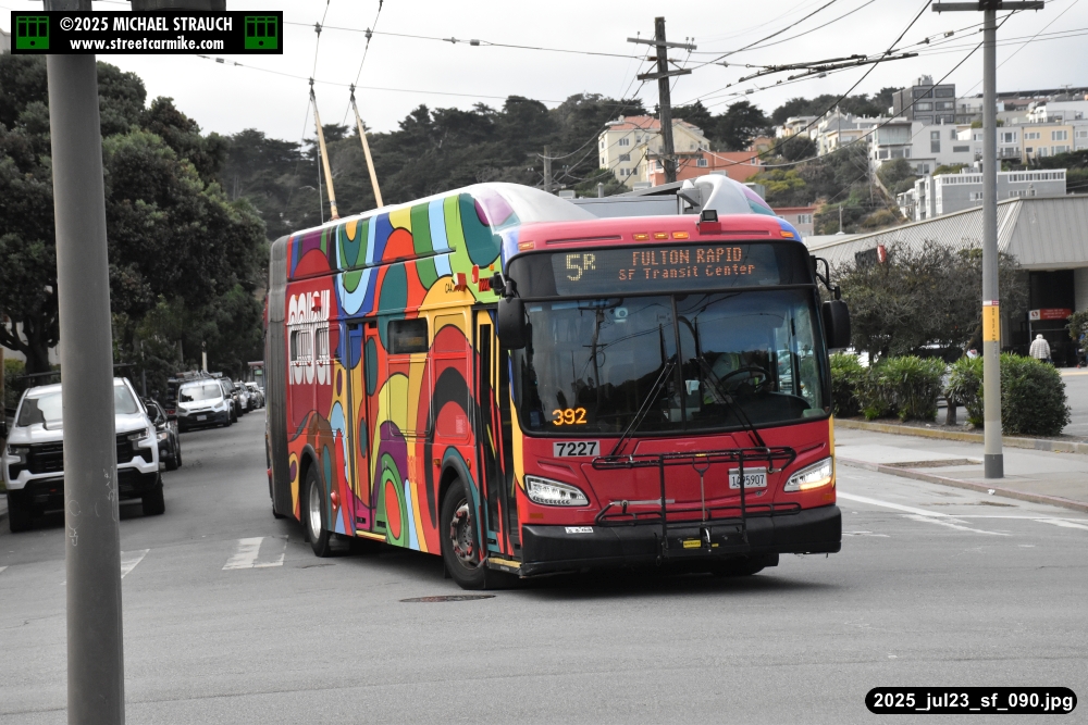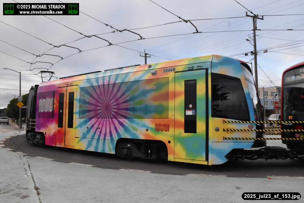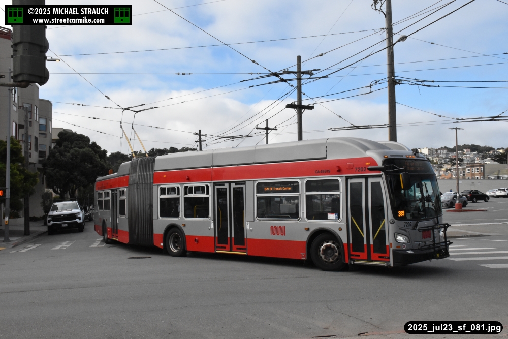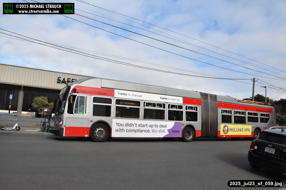 are Siemens 2046 operating N Judah, New Flyer 6612 on the 7 Haight/Noriega, and New Flyer 7227