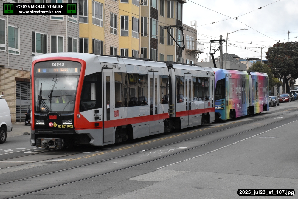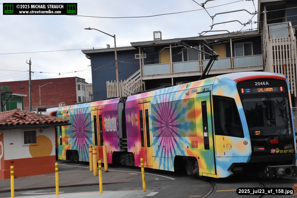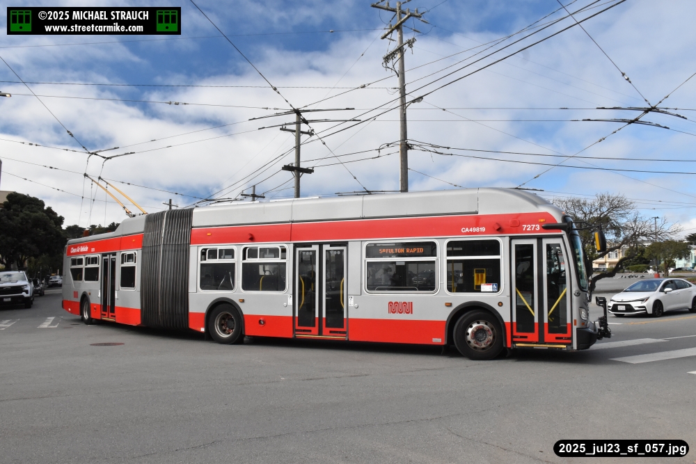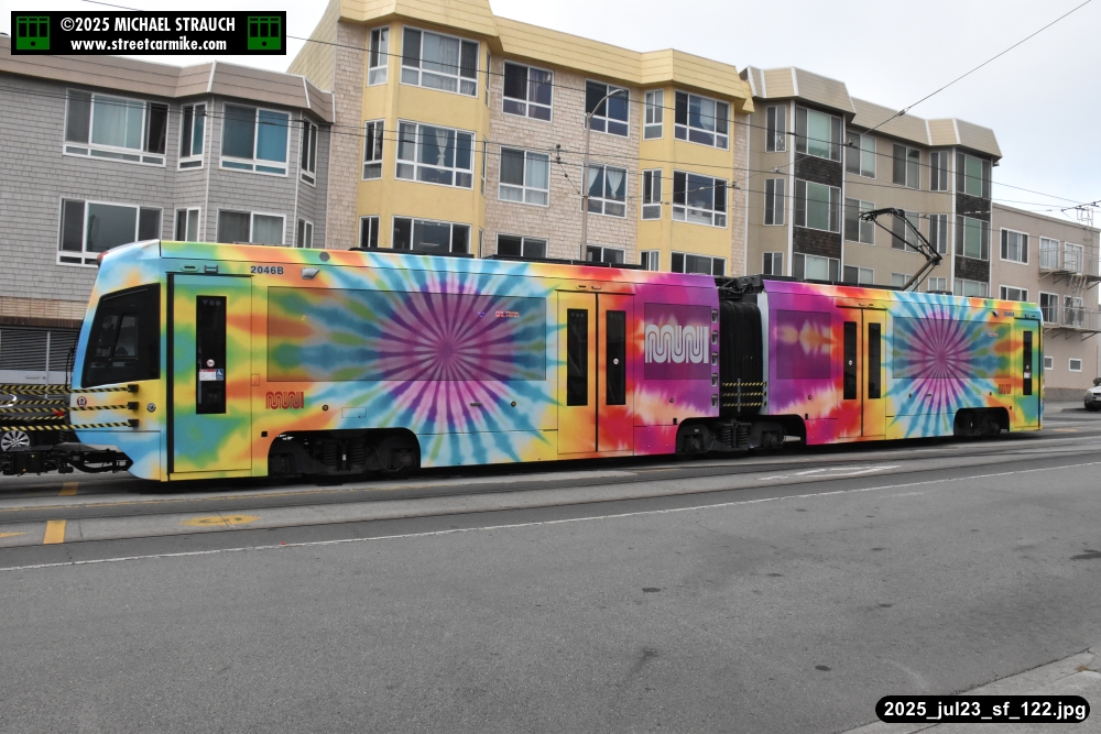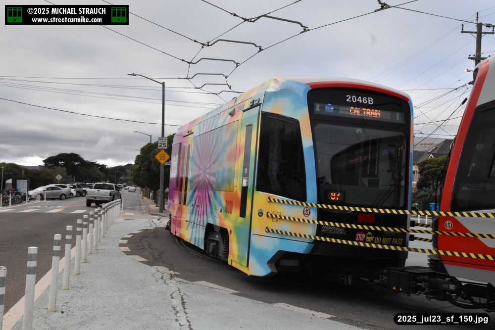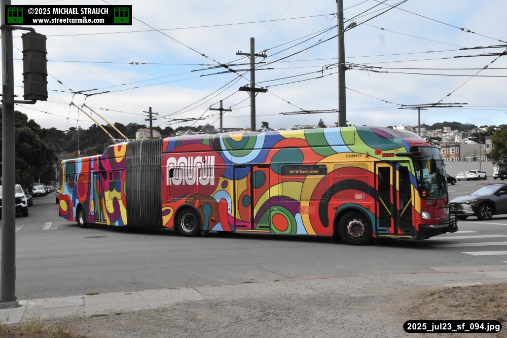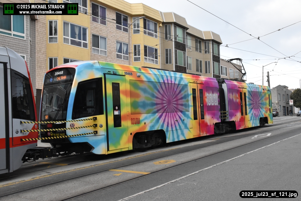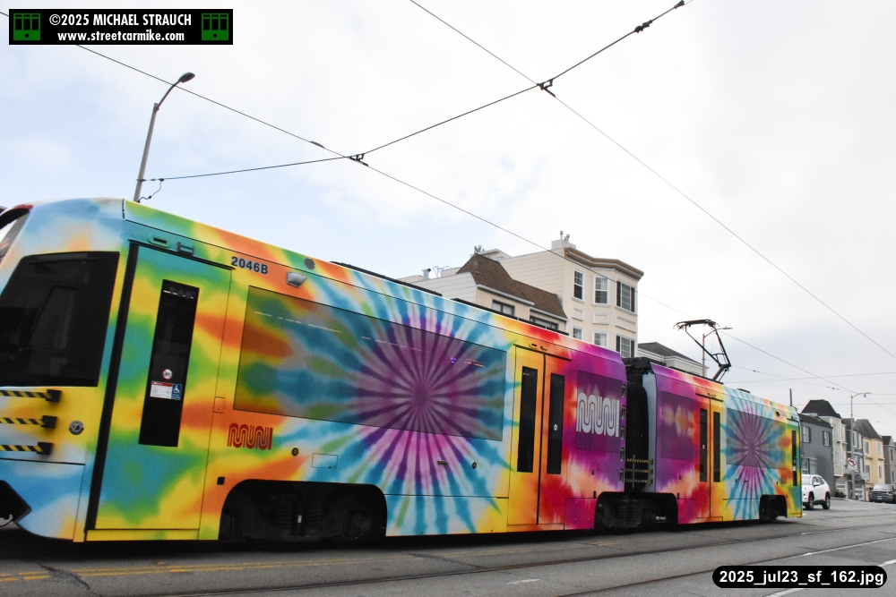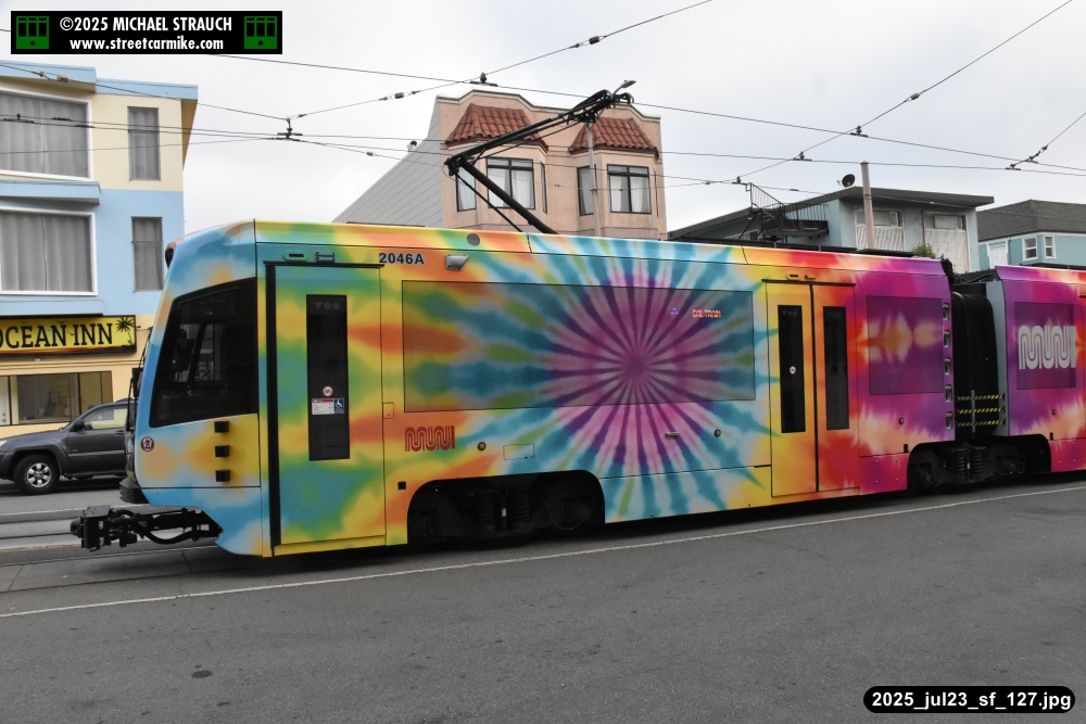 are Siemens 2046 operating N Judah, New Flyer 6612 on the 7 Haight/Noriega, and New Flyer 7227