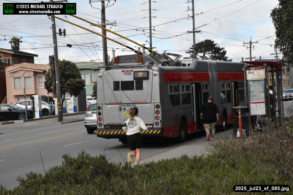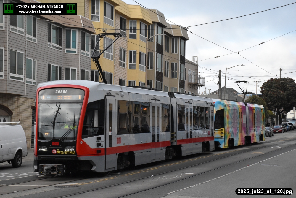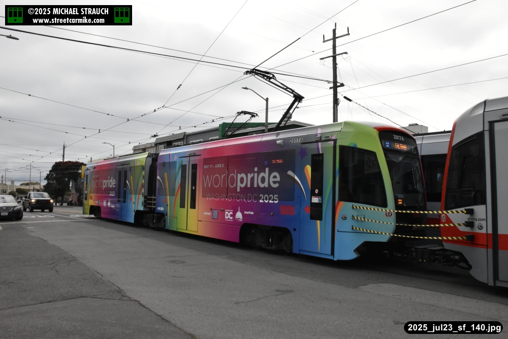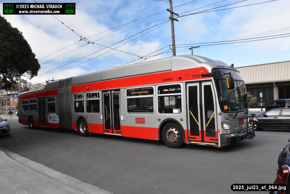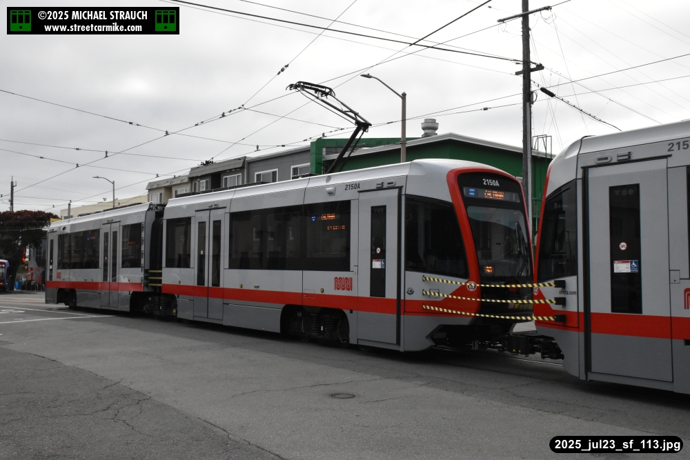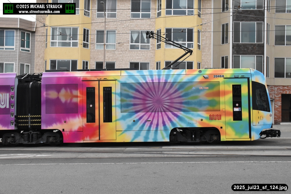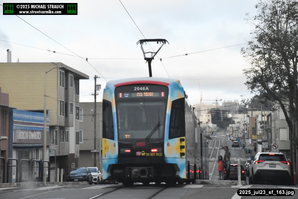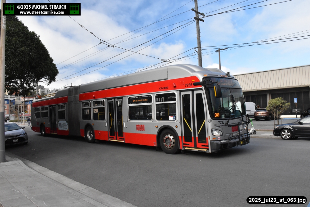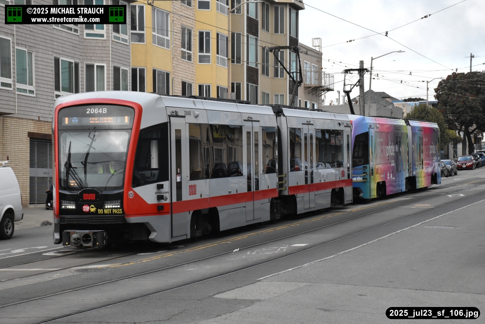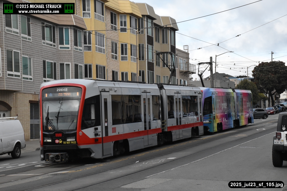 are Siemens 2046 operating N Judah, New Flyer 6612 on the 7 Haight/Noriega, and New Flyer 7227