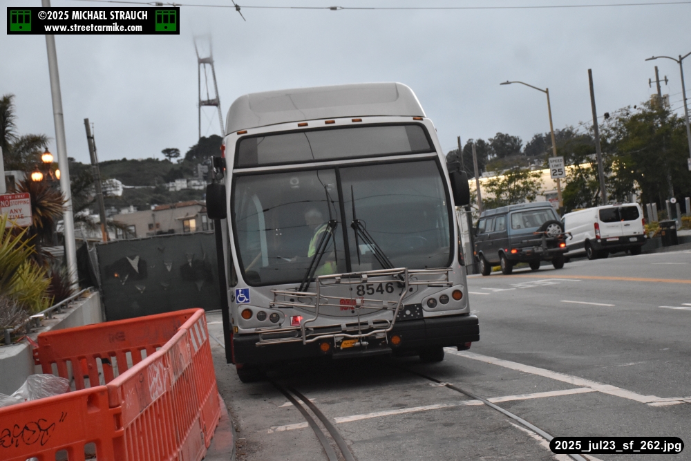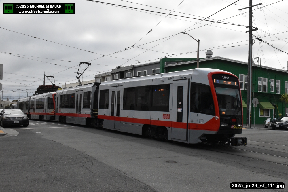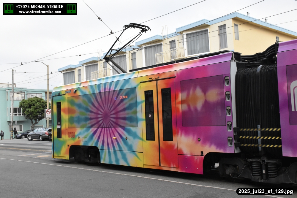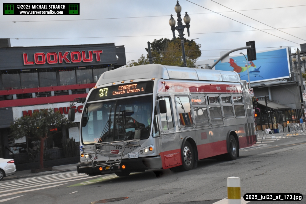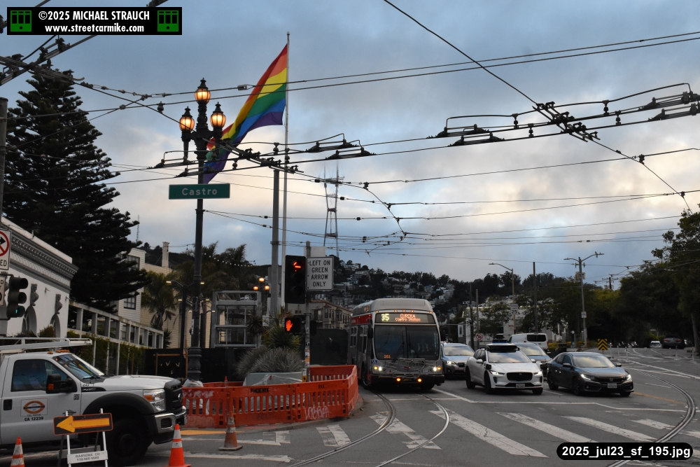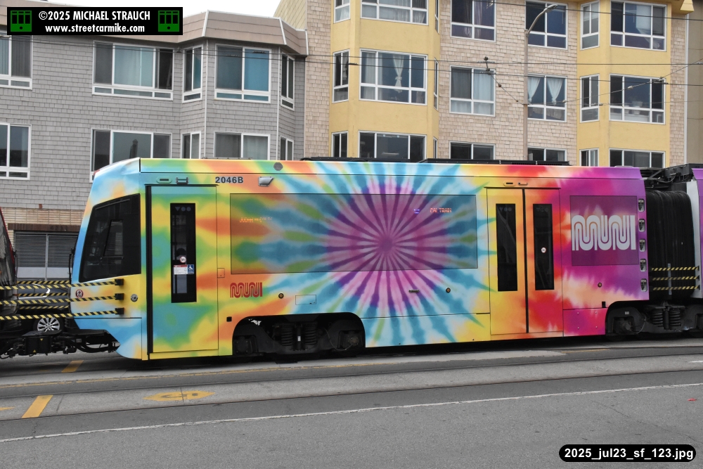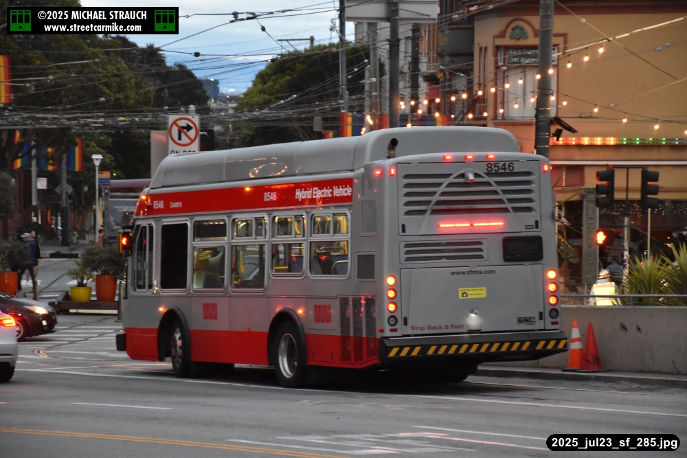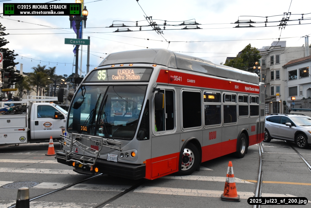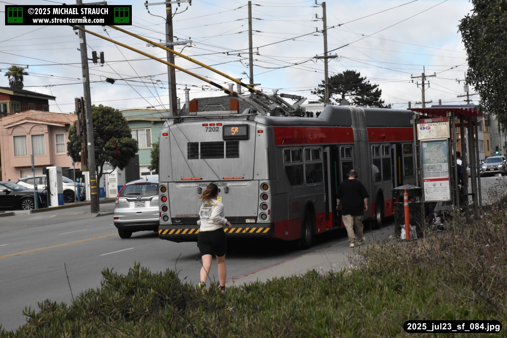 are Siemens 2046 operating N Judah, New Flyer 6612 on the 7 Haight/Noriega, and New Flyer 7227