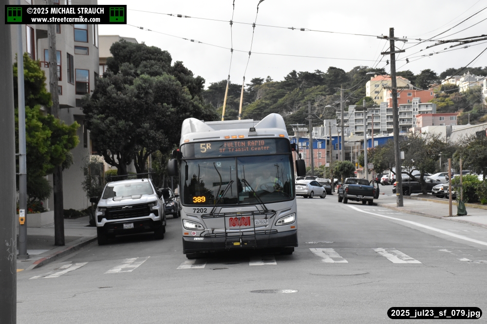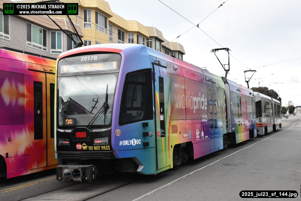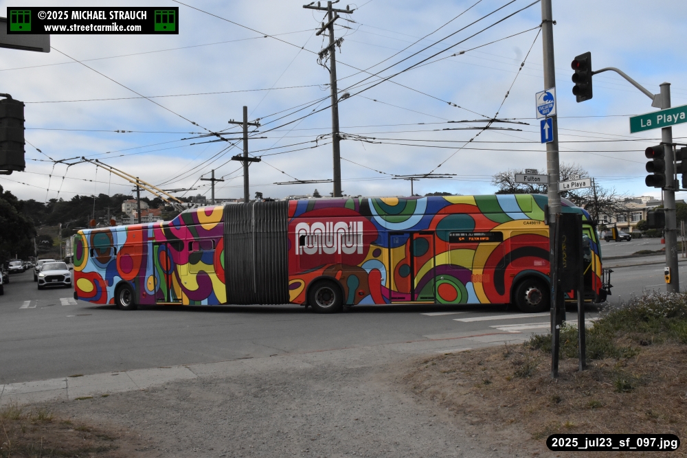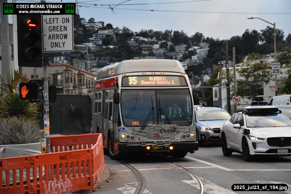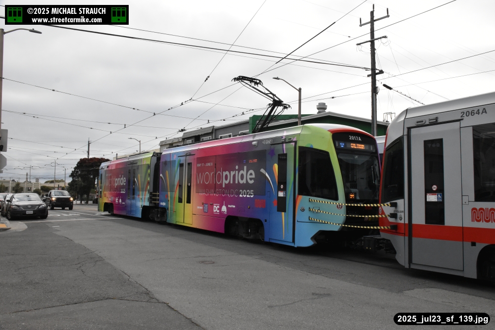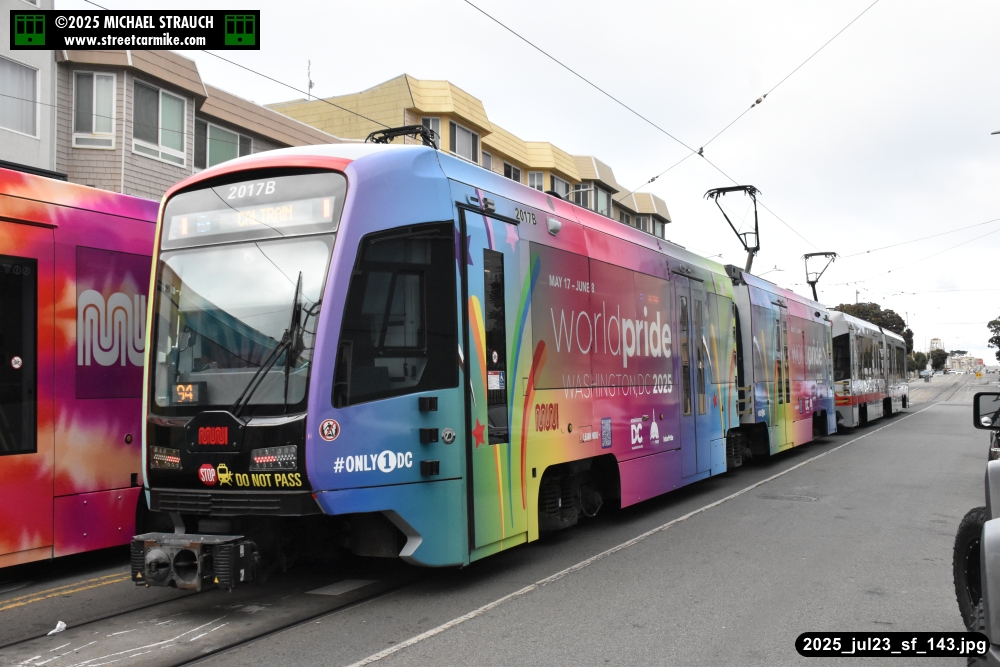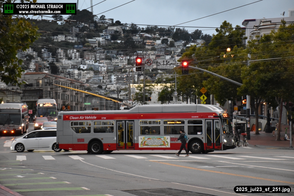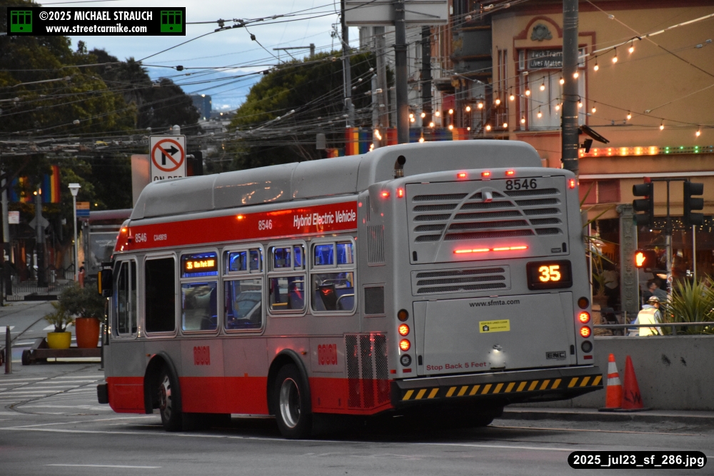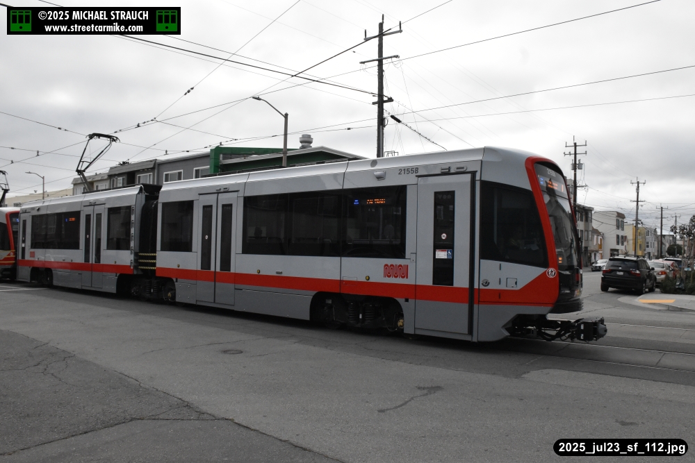are Siemens 2046 operating N Judah, New Flyer 6612 on the 7 Haight/Noriega, and New Flyer 7227