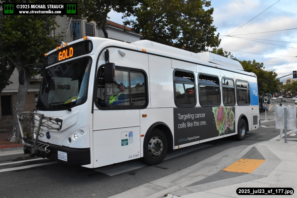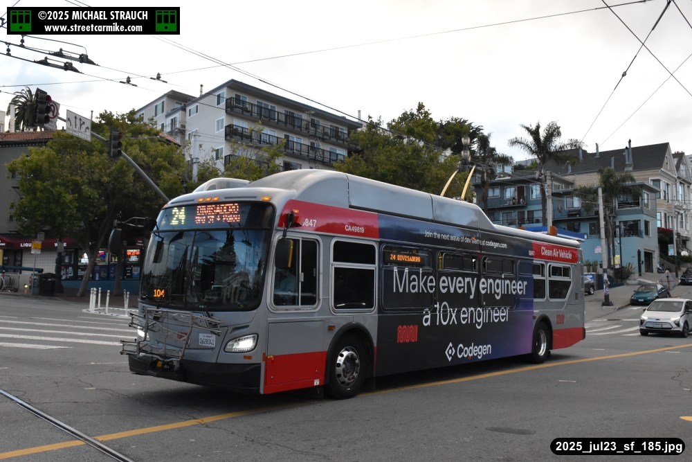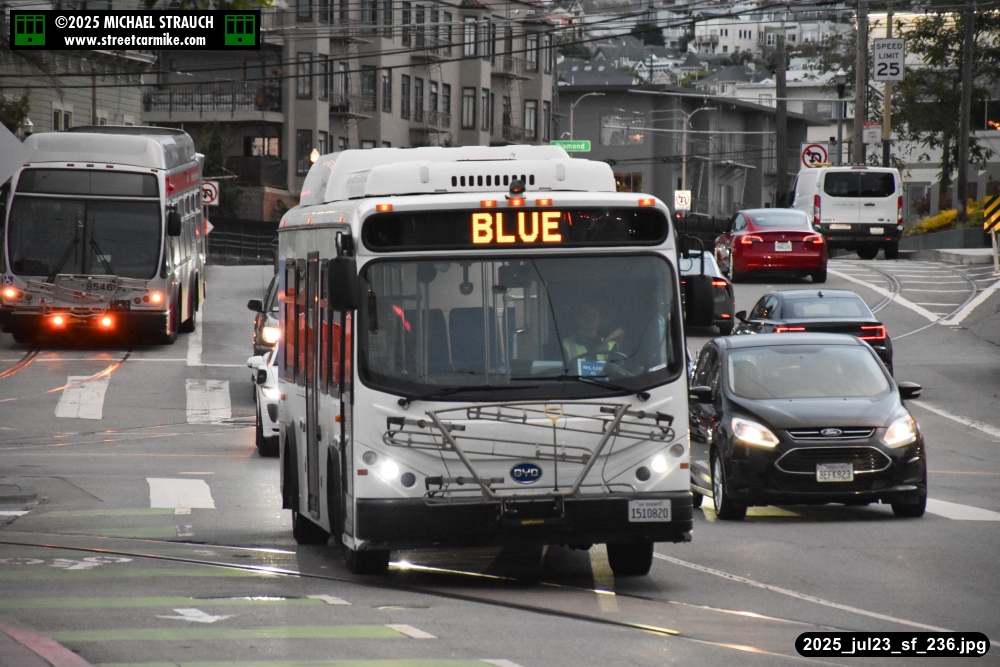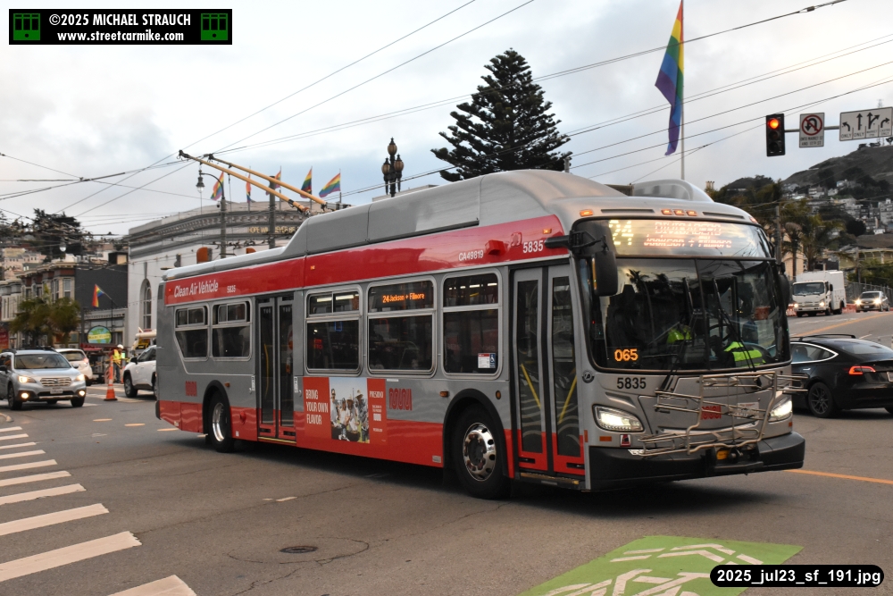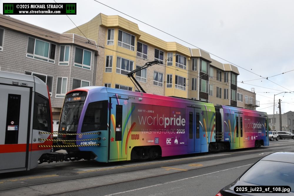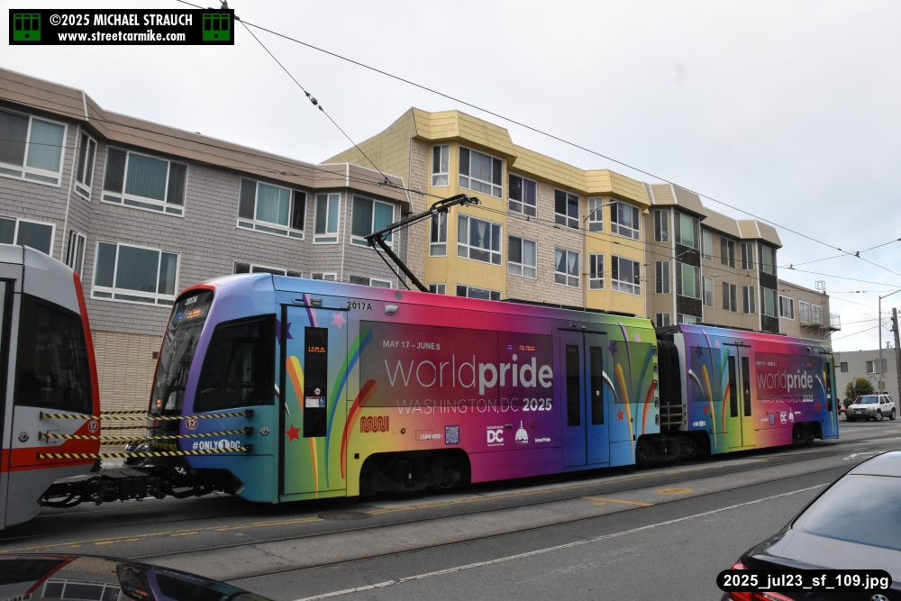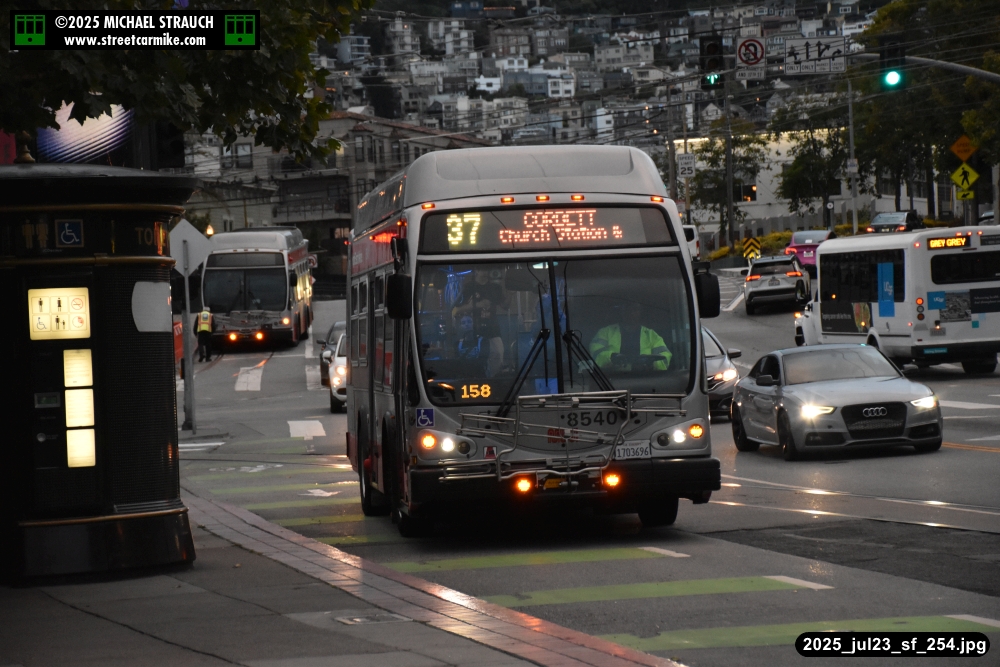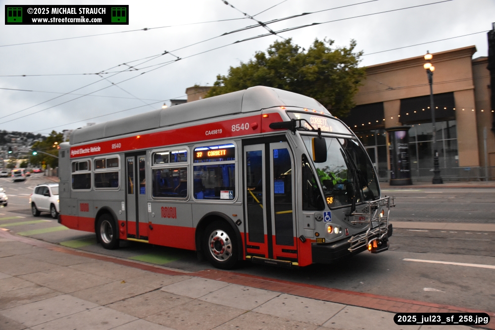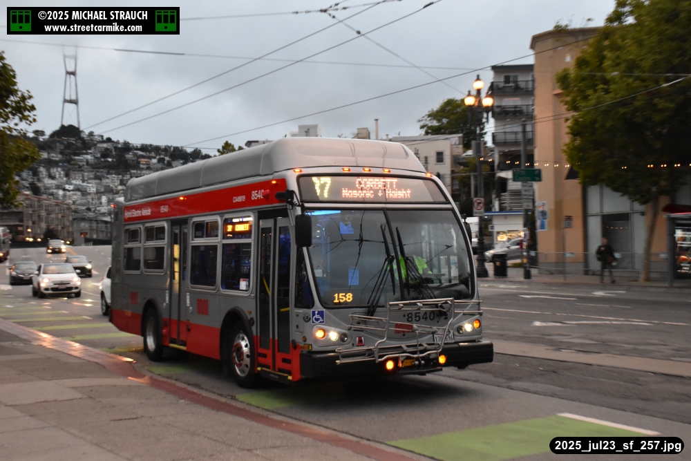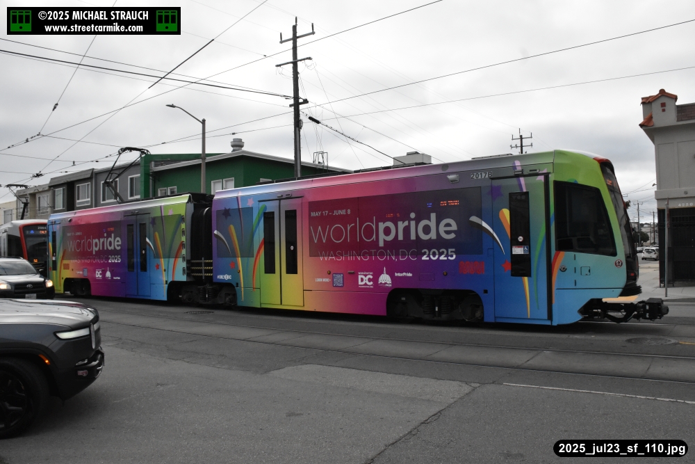 are Siemens 2046 operating N Judah, New Flyer 6612 on the 7 Haight/Noriega, and New Flyer 7227