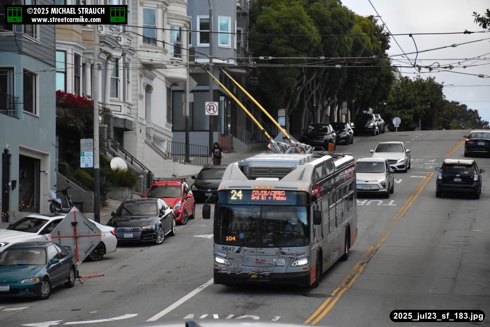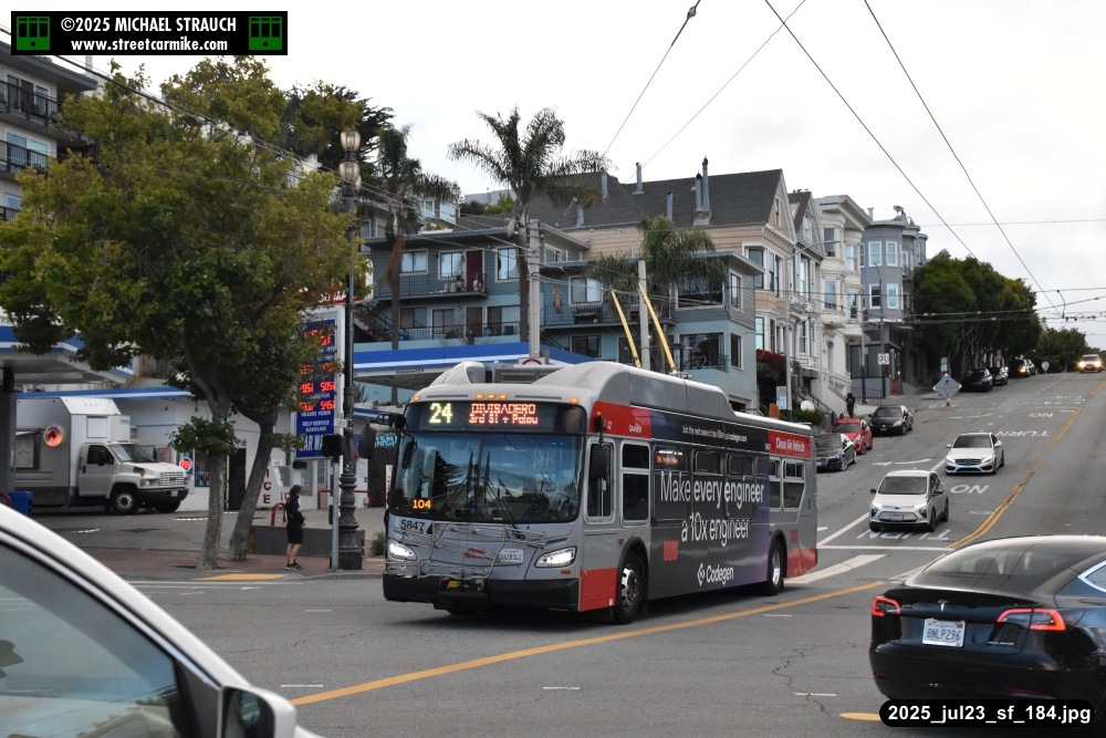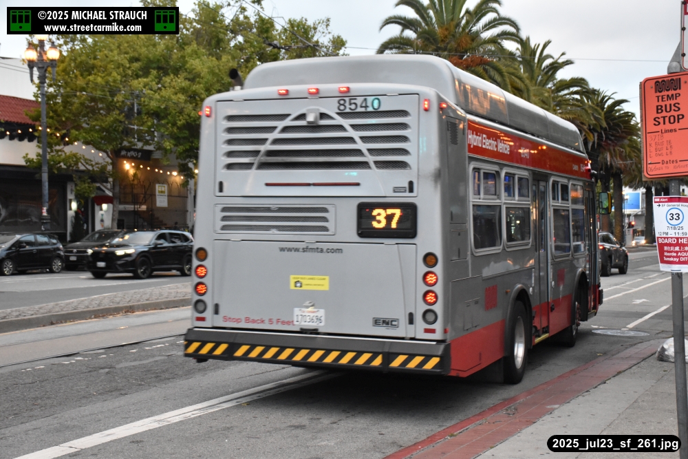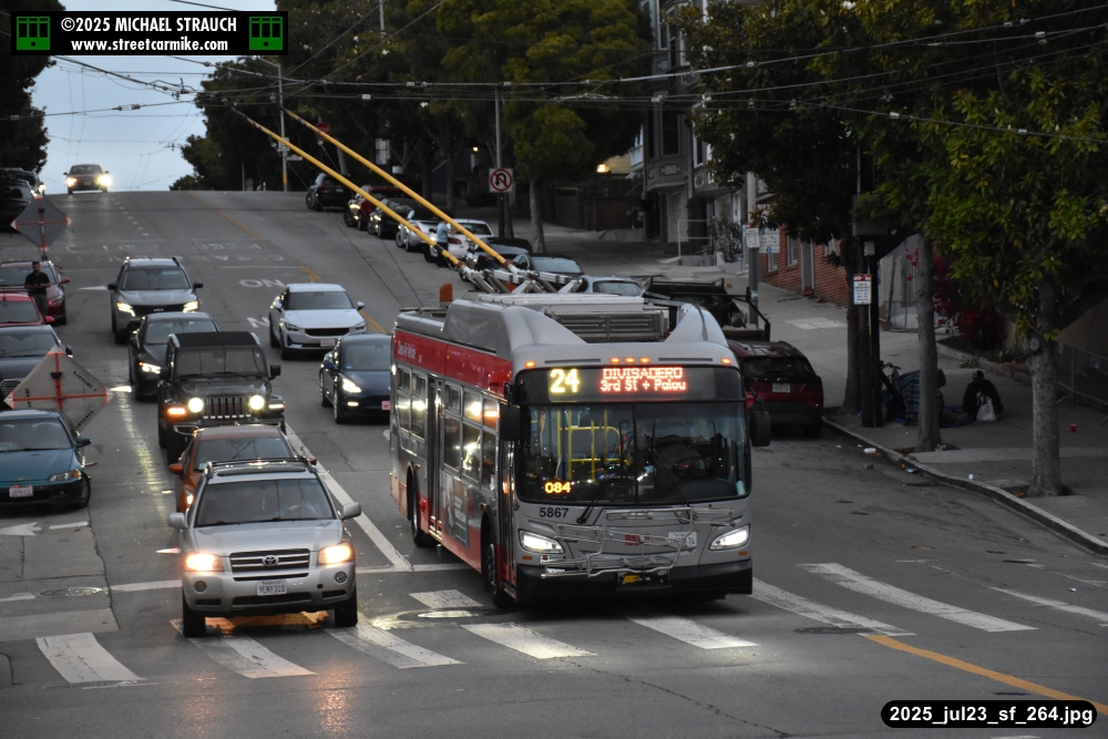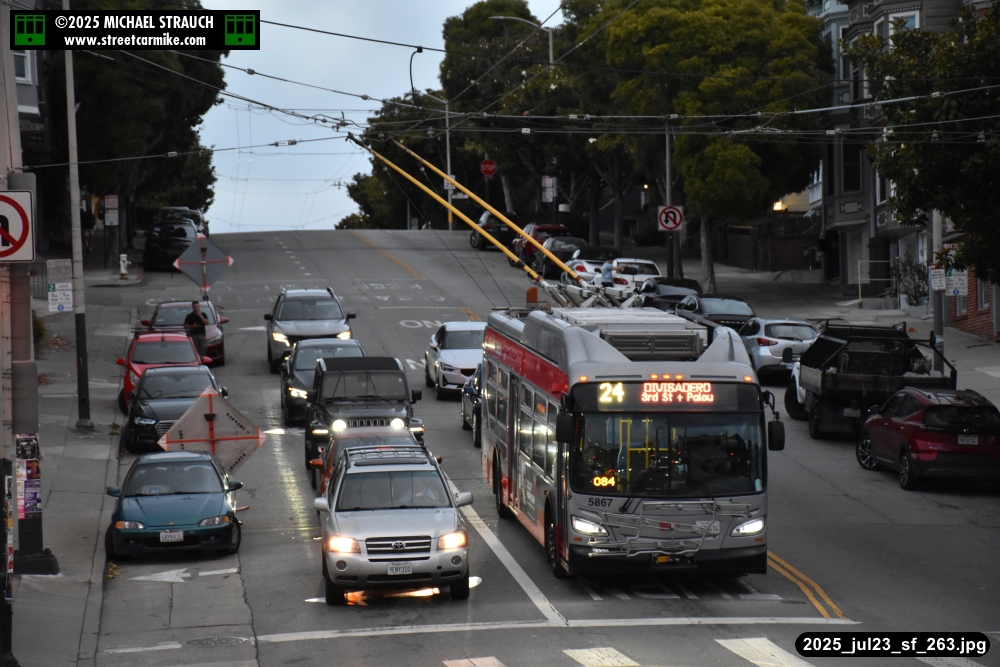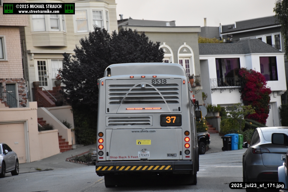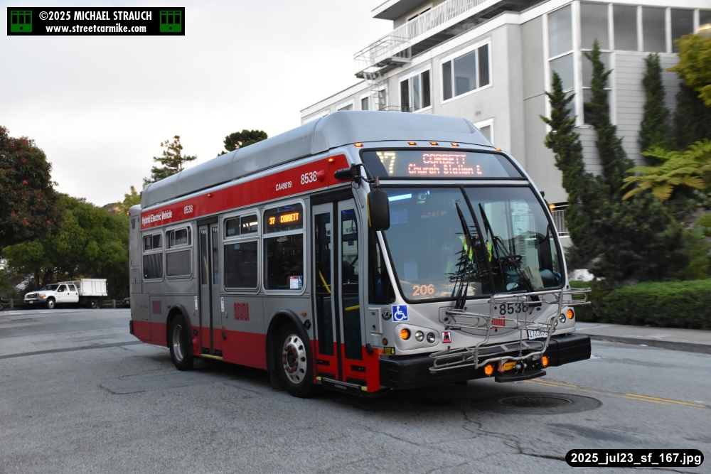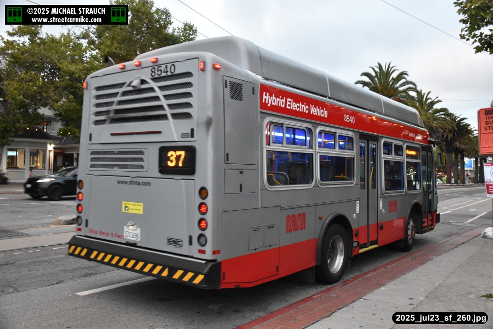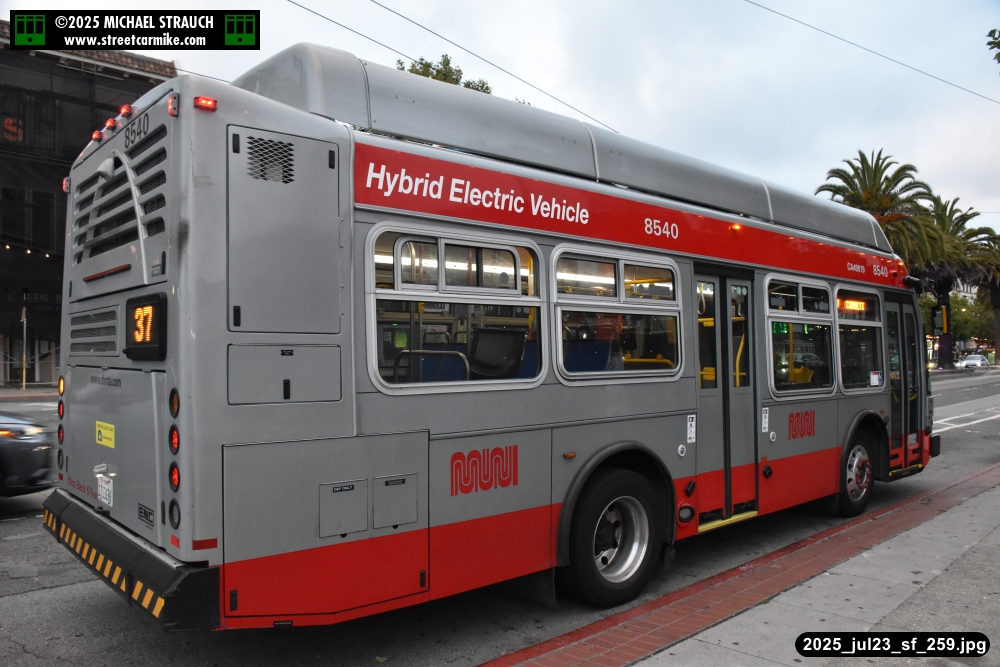 are Siemens 2046 operating N Judah, New Flyer 6612 on the 7 Haight/Noriega, and New Flyer 7227