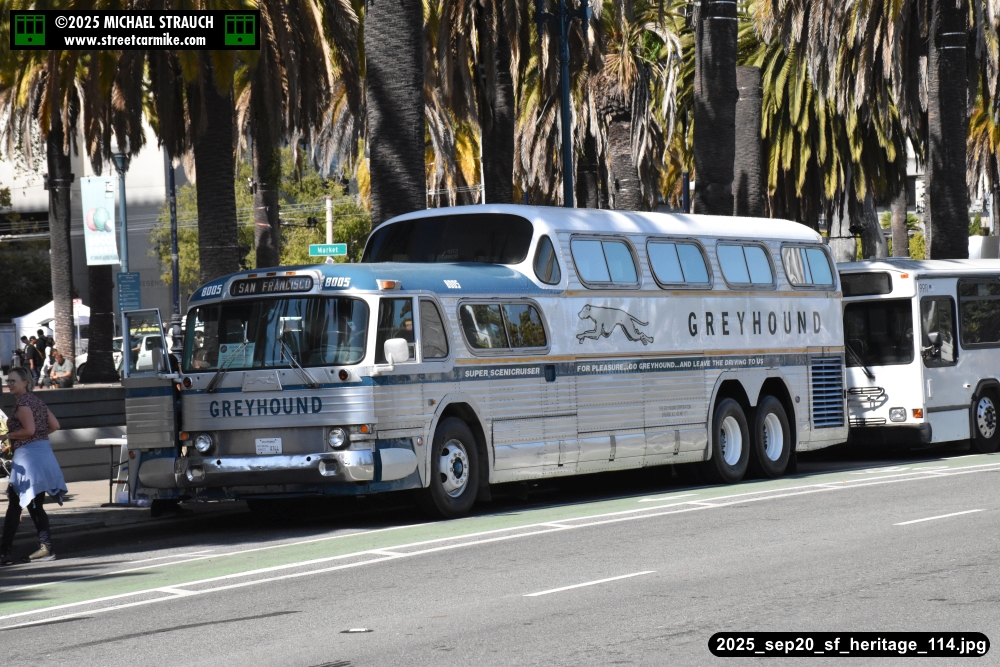 Also seen parked on Embarcadero were privately owned Muni 3182, VTA 9911, and the Pacific Bus Museum's