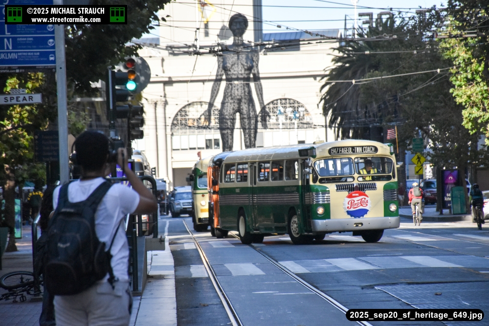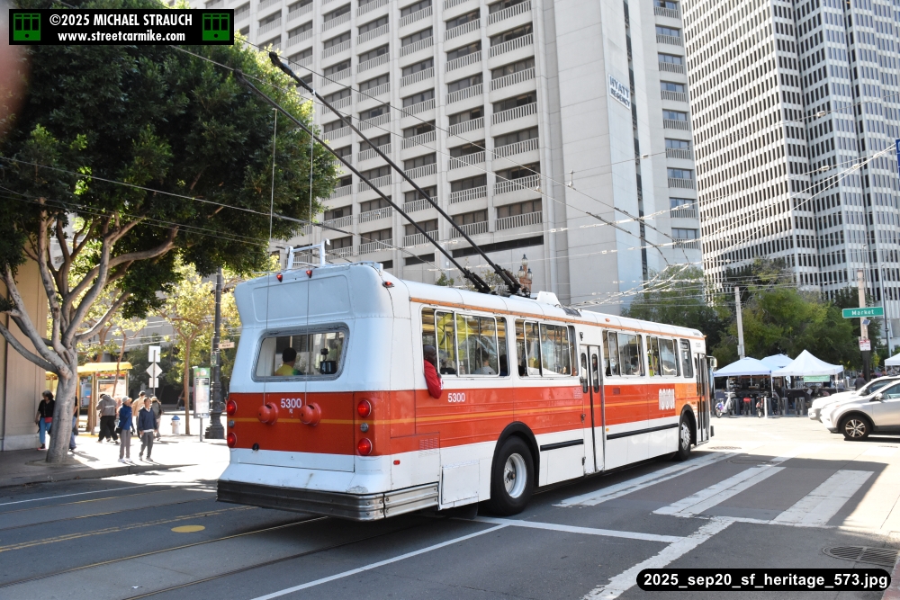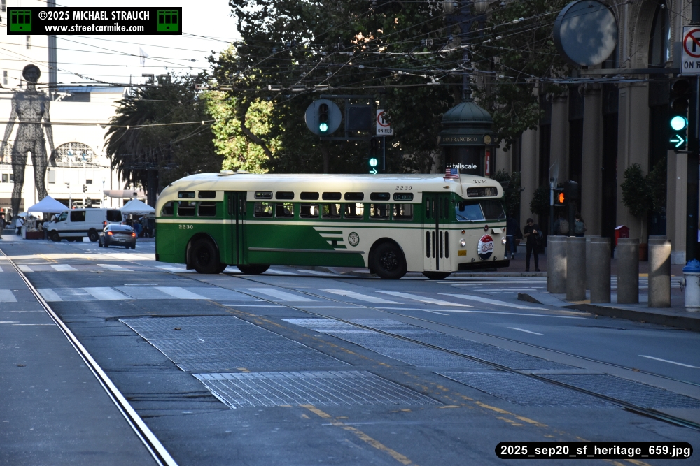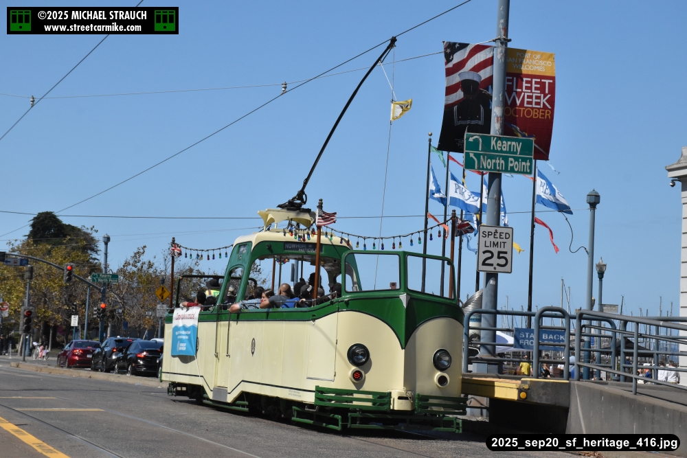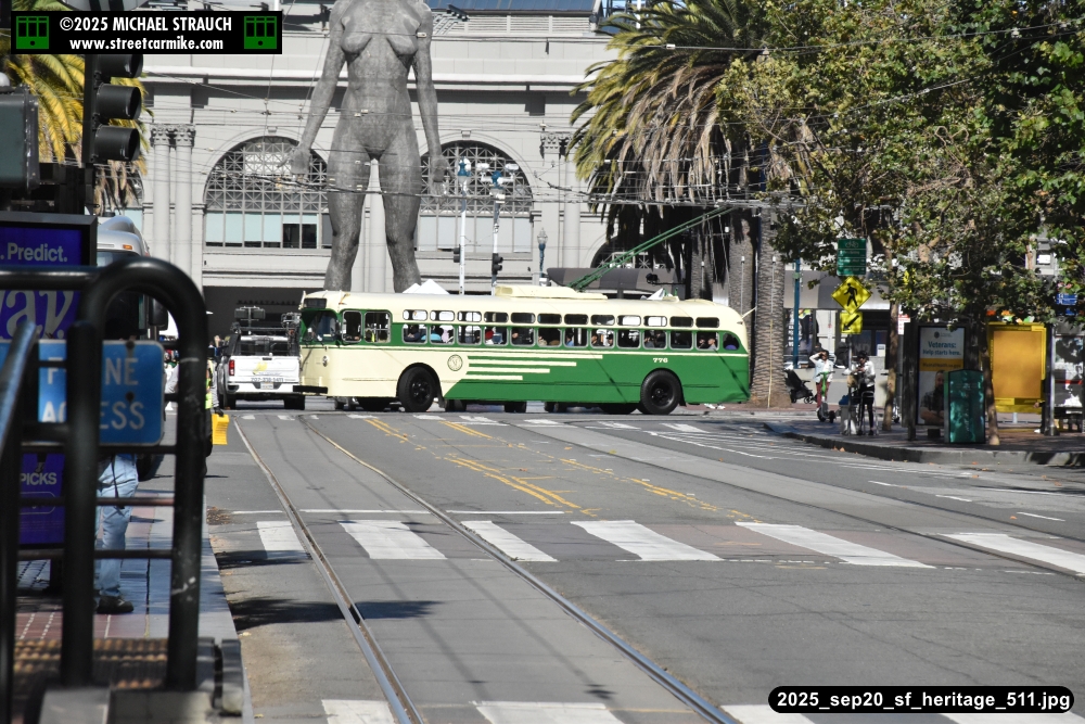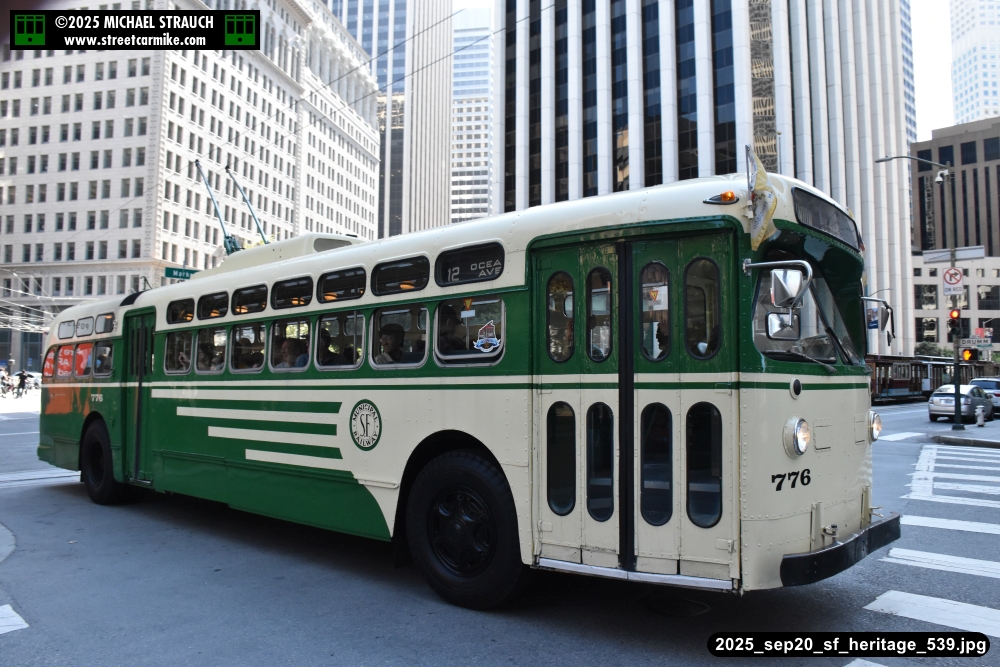 to Pier 39 and back. On the trolley coach side, Marmon 776 and Flyer 5300 were looping out Columbus Ave.