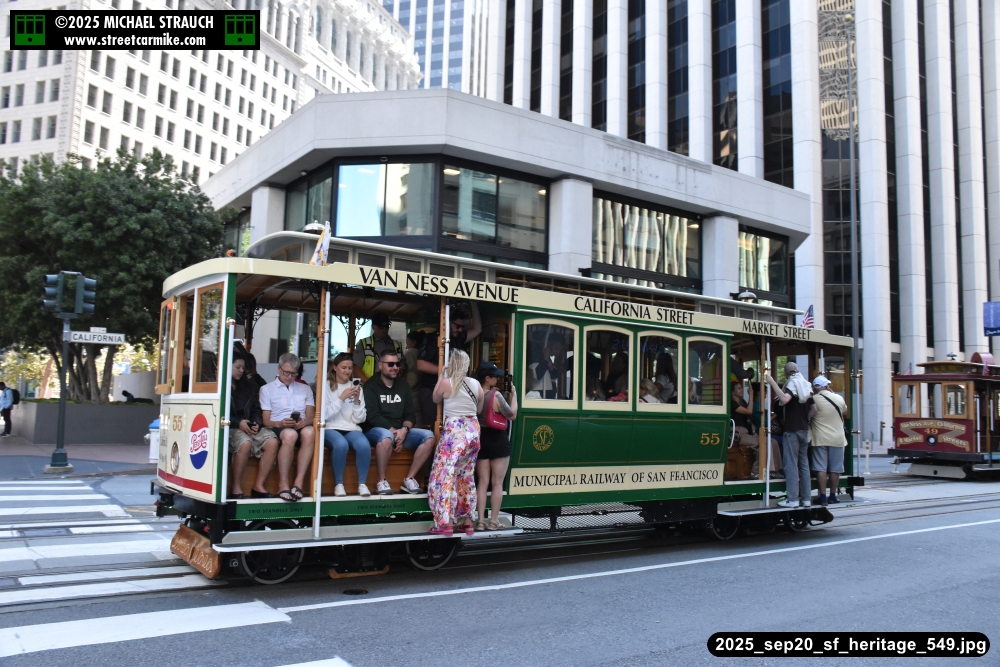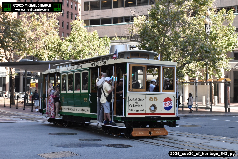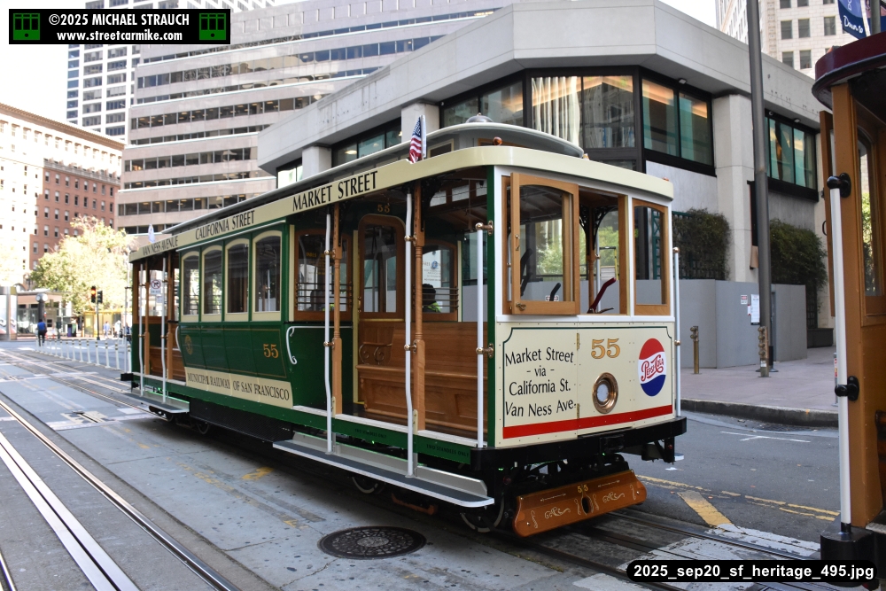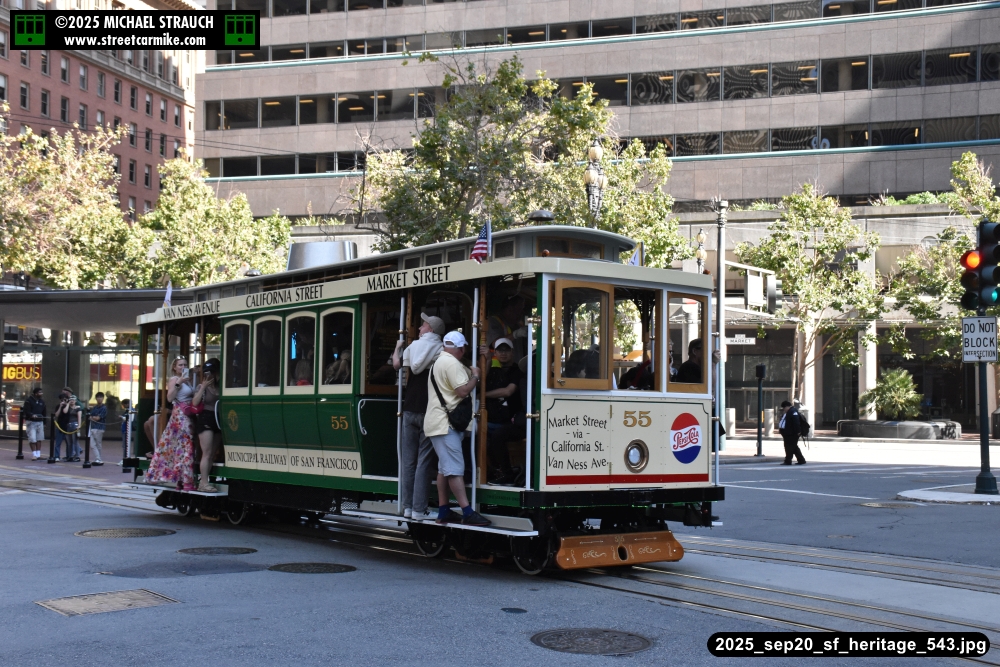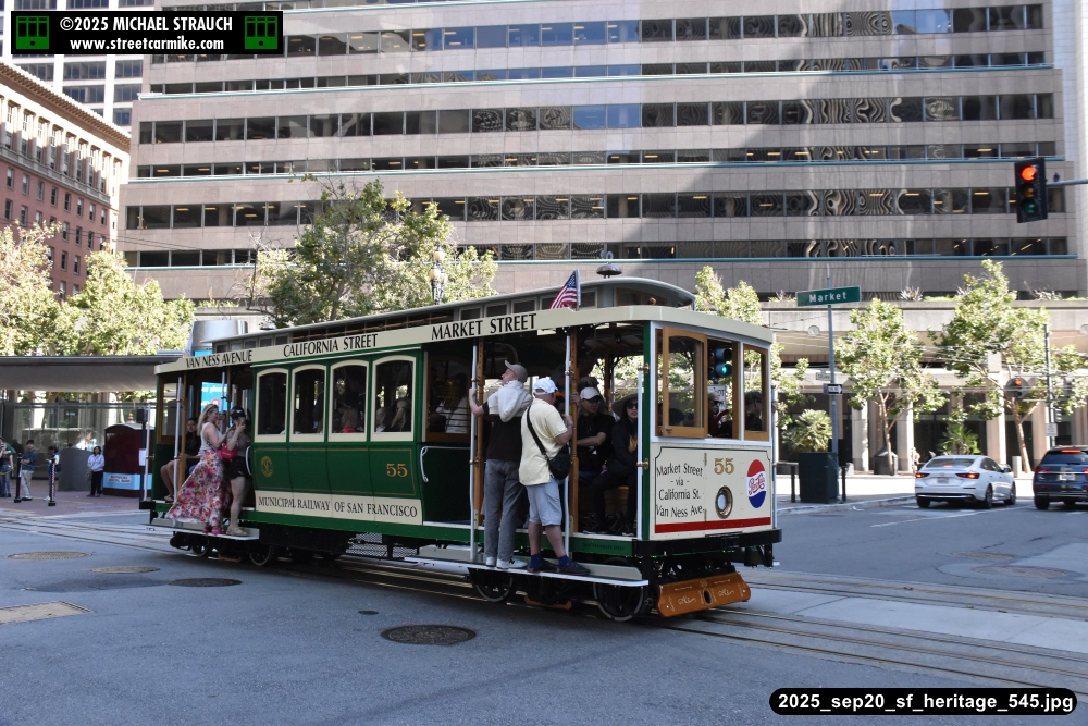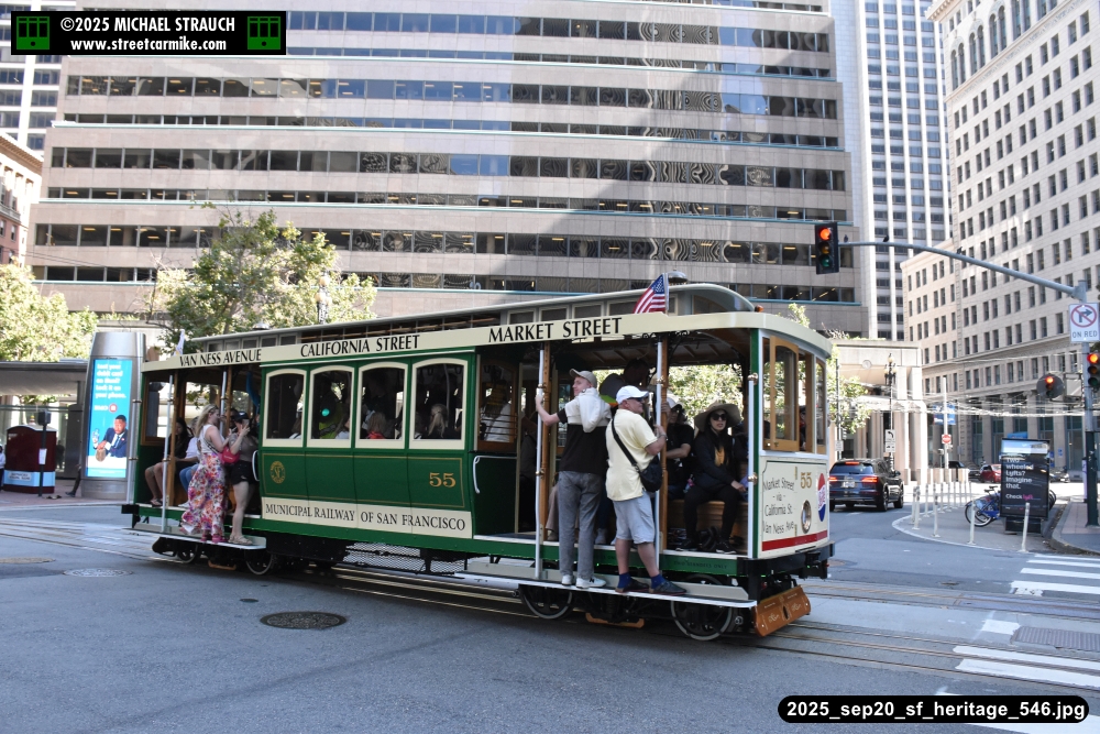 Street, Big 19 and newly restored 55 in Muni 1950s livery were in service.