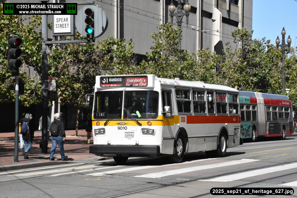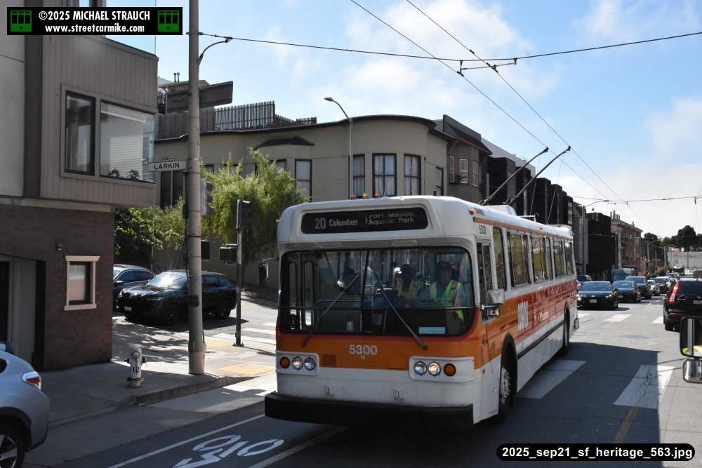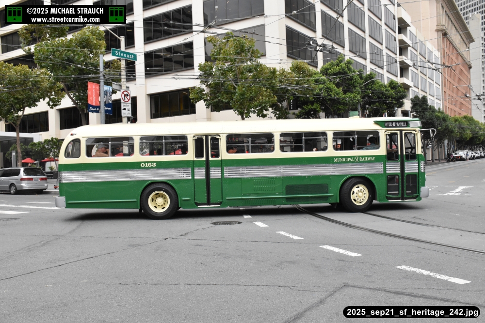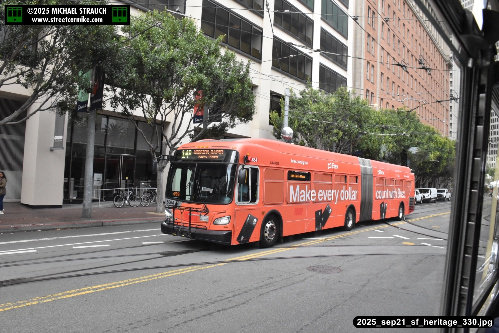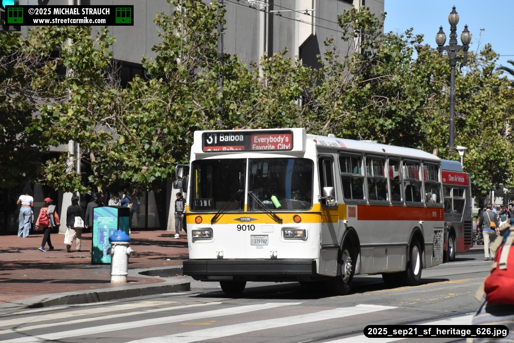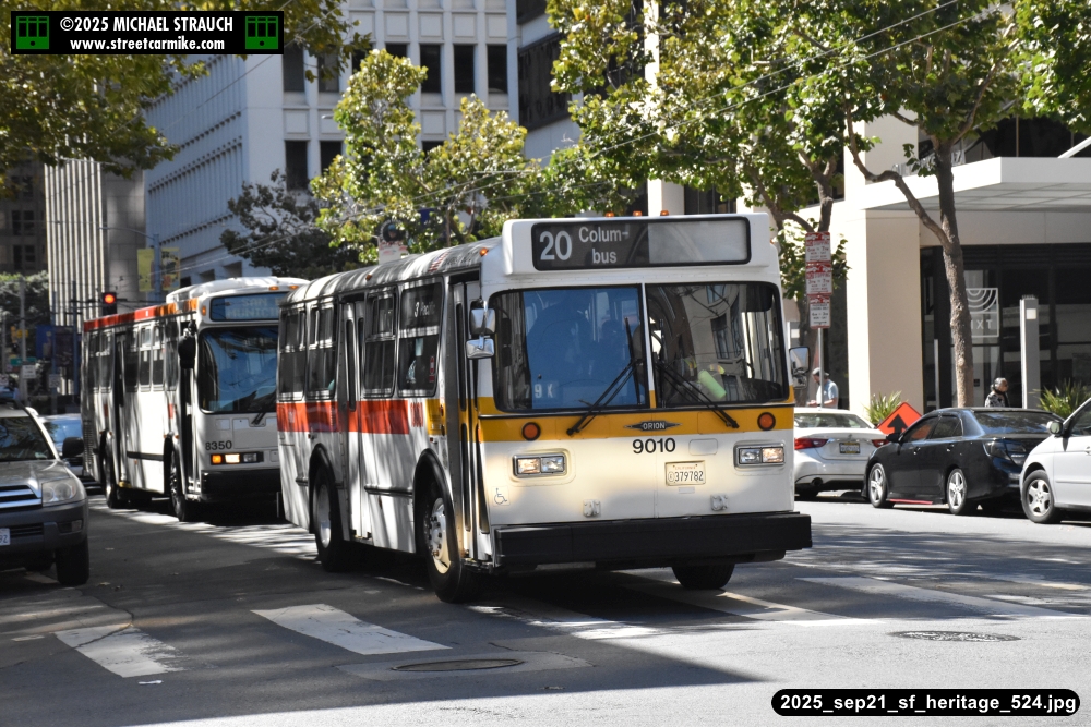 Two rides, on Twin 0163 on the Caltrain route and on Orion 9010 on the Columbus Ave. and North Point