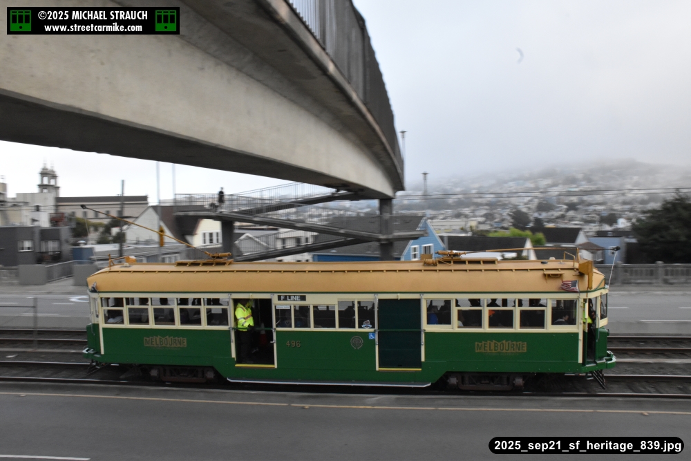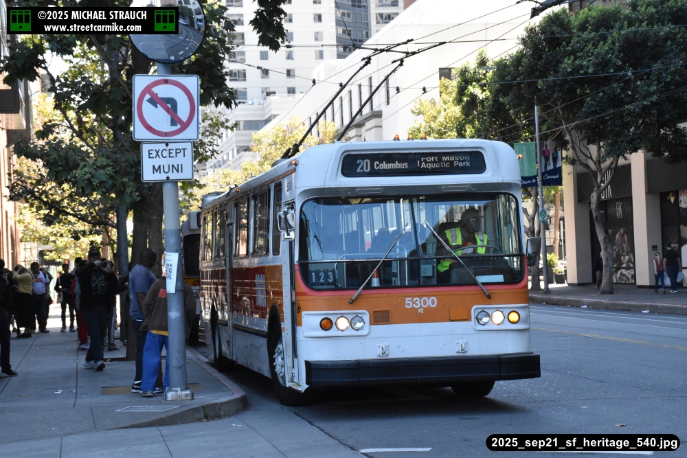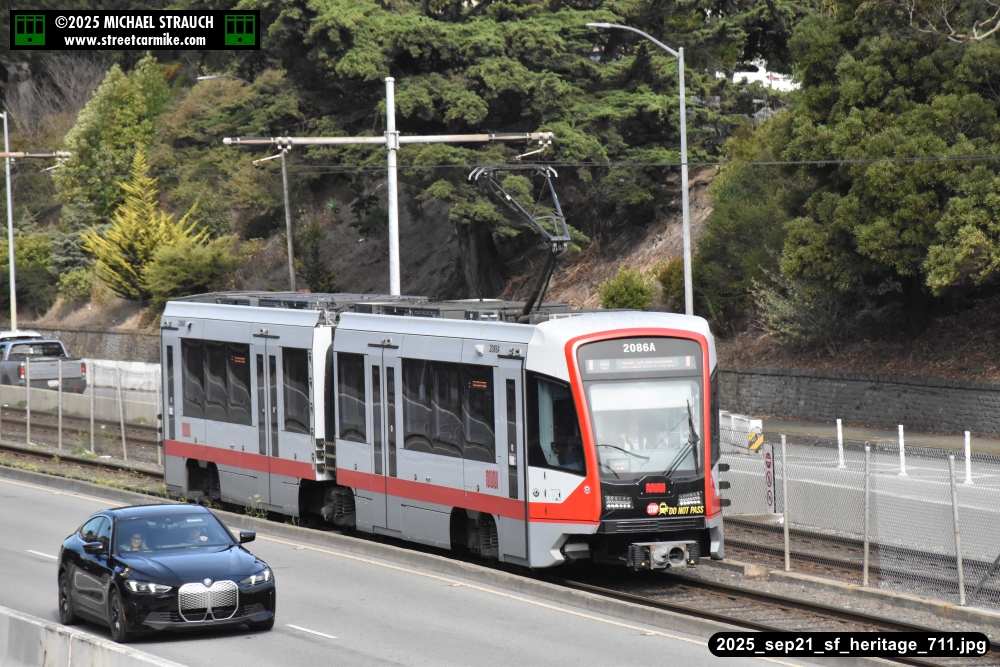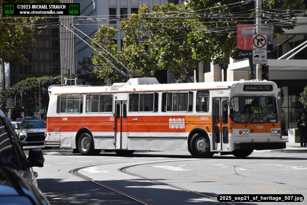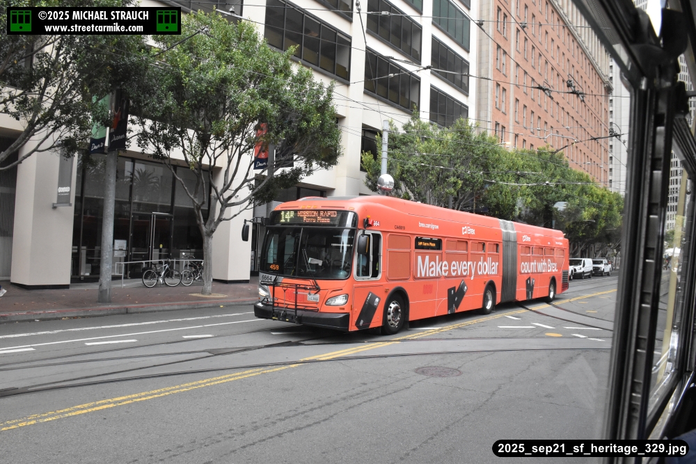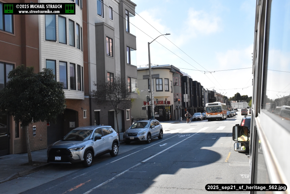 Two rides, on Twin 0163 on the Caltrain route and on Orion 9010 on the Columbus Ave. and North Point