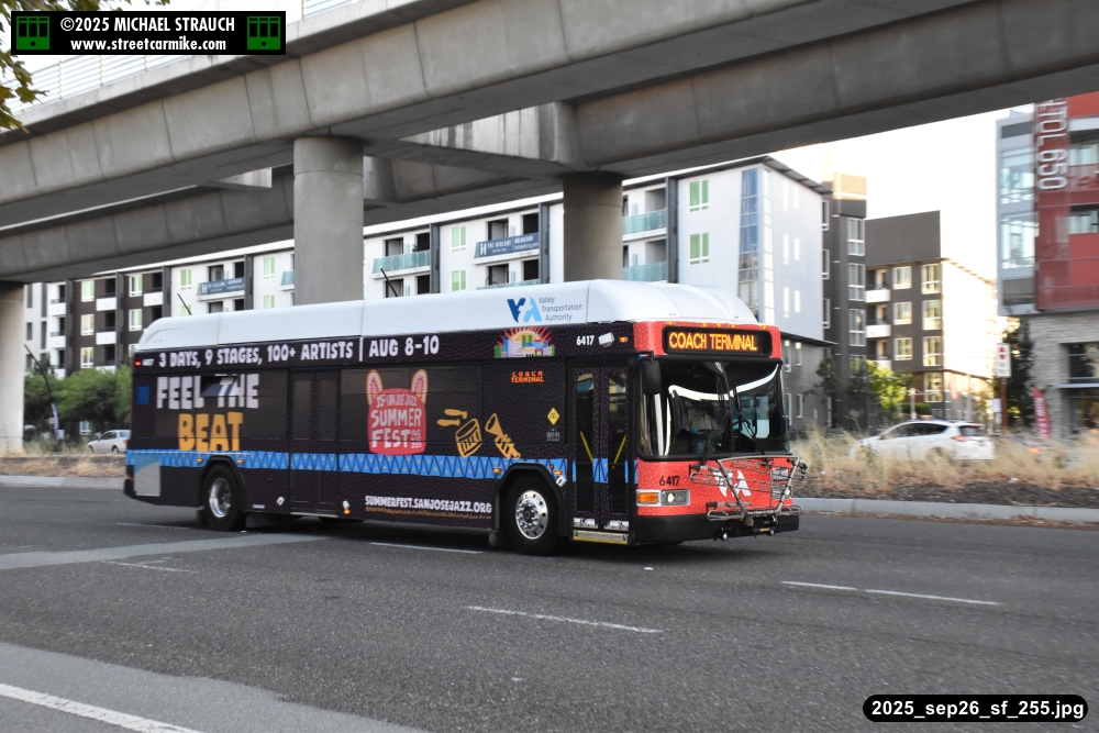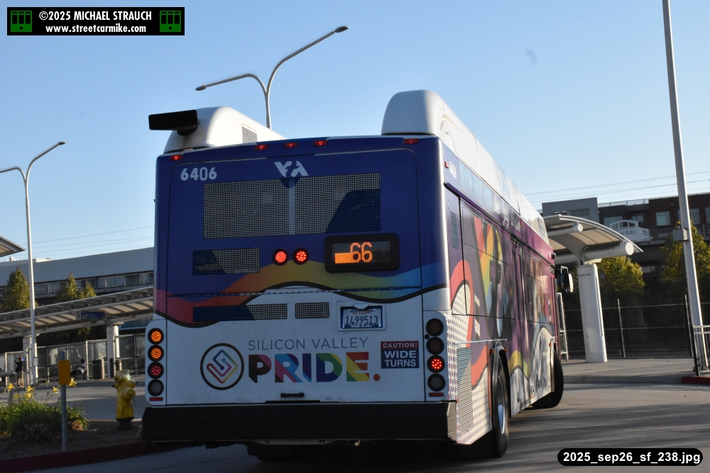 to my parked car at Milpitas Station. VTA Gillig 6406 in Pride livery was coming north on the 66,