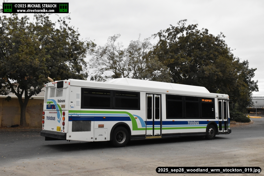 airport to downtown Sacramento. Also at the transit center was Orion 730 on local route 211.